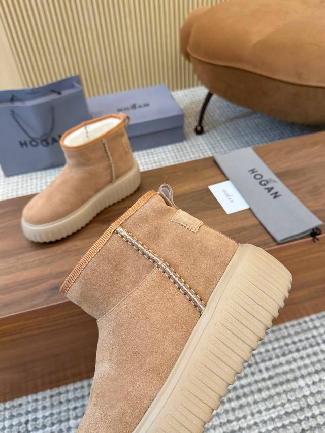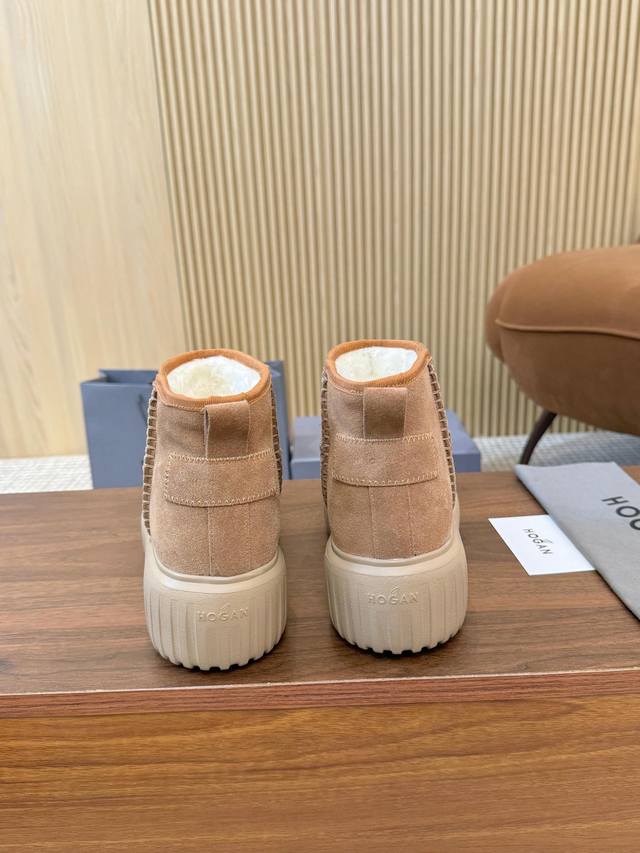 实价 爆爆爆 霍根Hogan新款, 女士时尚圆头真皮羊毛短靴,运动休闲,厚底让你穿上瞬间长高55Mm。绒面小牛皮手工拉线,新时代简约的美感 ,后置提鞋环,后置L