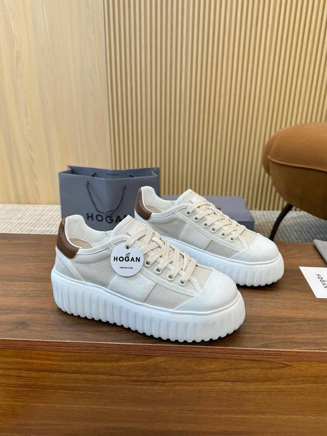 实价 爆爆爆 霍根Hogan新款, 男女情侣同款、时尚圆头真皮系带 ,运动休闲,厚底让你穿上瞬间长高55Mm。绸织牛皮包边,撞色拼接,流畅线条勾画出新时代简约的