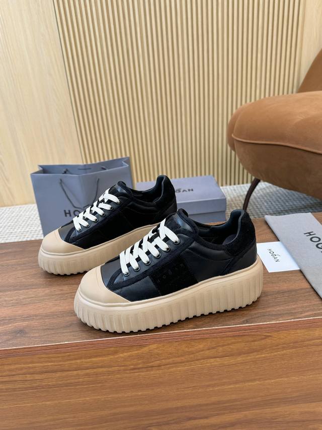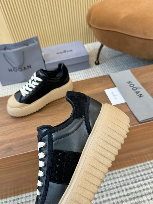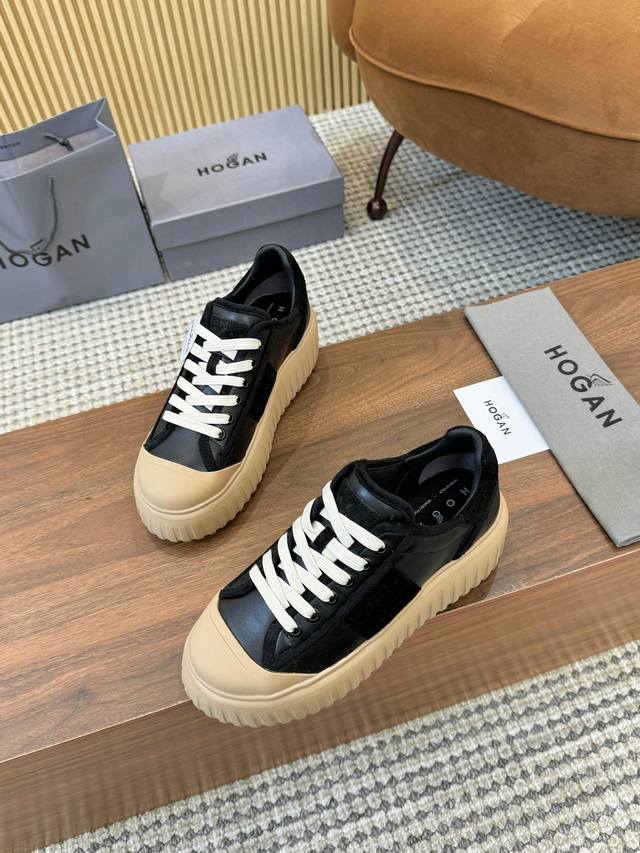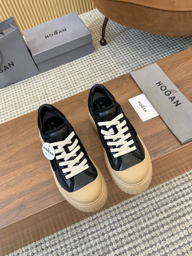实价 爆爆爆 霍根Hogan新款, 男女情侣同款、时尚圆头真皮系带 ,运动休闲,厚底让你穿上瞬间长高55Mm。绸织牛皮包边,撞色拼接,流畅线条勾画出新时代简约的