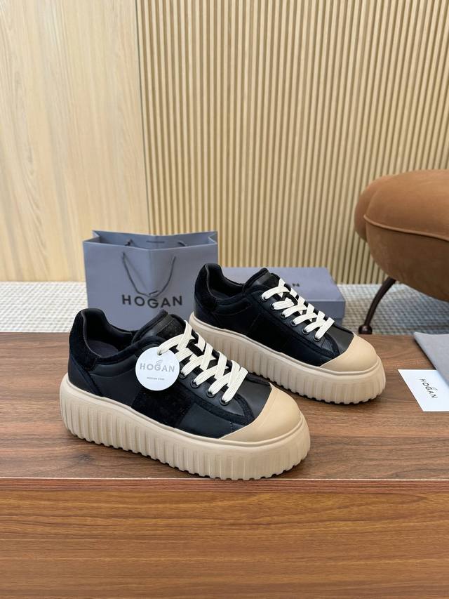 实价 爆爆爆 霍根Hogan新款, 男女情侣同款、时尚圆头真皮系带 ,运动休闲,厚底让你穿上瞬间长高55Mm。绸织牛皮包边,撞色拼接,流畅线条勾画出新时代简约的美感,大底包头, ,鞋舌置Logo压花,高弹鞋垫能让你美脚舒适,一款经典潮鞋永不过时,你和他值得拥有。 ,男女情侣款36-44码 35 45定做不退换 DDD