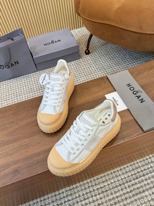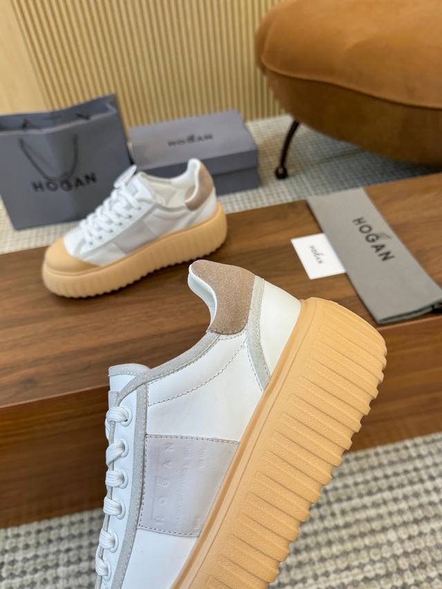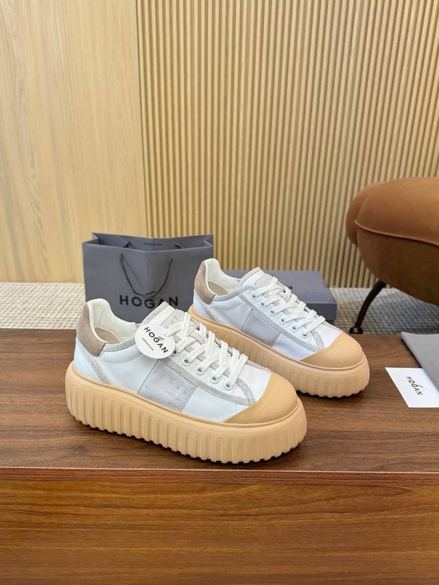 实价 爆爆爆 霍根Hogan新款, 男女情侣同款、时尚圆头真皮系带 ,运动休闲,厚底让你穿上瞬间长高55Mm。绸织牛皮包边,撞色拼接,流畅线条勾画出新时代简约的