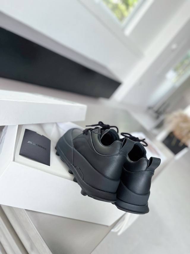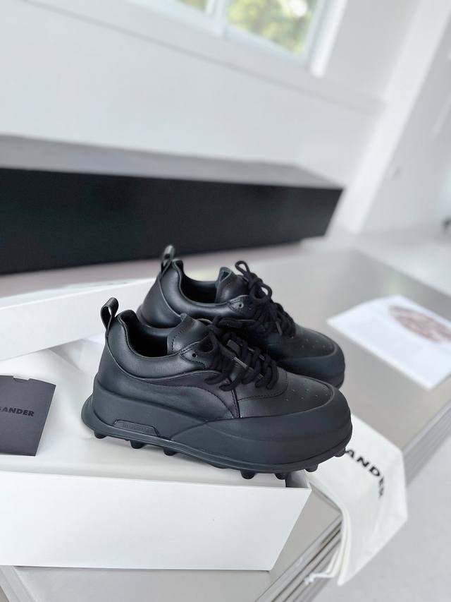 实价 独家首发代购级Jilsande*吉尔桑达 推荐款厚底休闲小白鞋专柜刚推出便迅速断货~非常Chic,穿出立显高档,进来看 Jil Sander 新品 Orb运动鞋!灵感起源于对复古足球鞋的研究。独特的模压鞋底采用Tpu热塑性聚氨酯弹性体插塞设计。Tpu 热塑性聚氨酯 是一种非常有弹性和柔性的它摸起来很光滑,但同时又非常耐用和坚固,给人以大胆而具有标识性的有机理念。Tpu通常作为稳定系统之一,会放在鞋底的足弓或足跟部位,起稳定和承托作用。Orb系列外层鞋面材料同时包裹住鞋底鞋面:进口头层牛皮、 内里:水