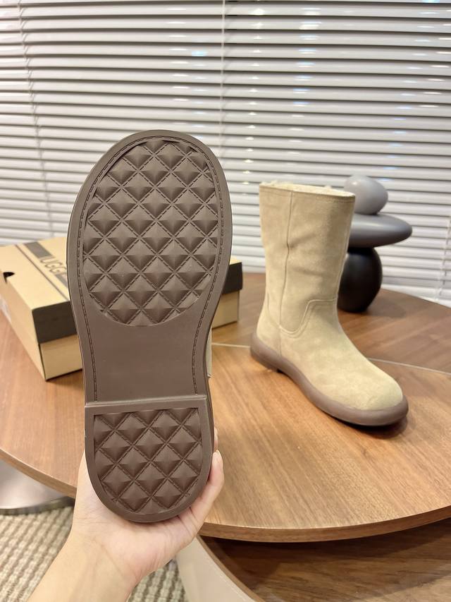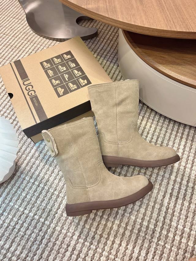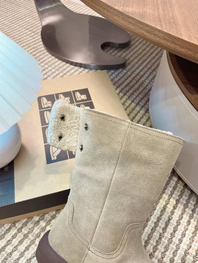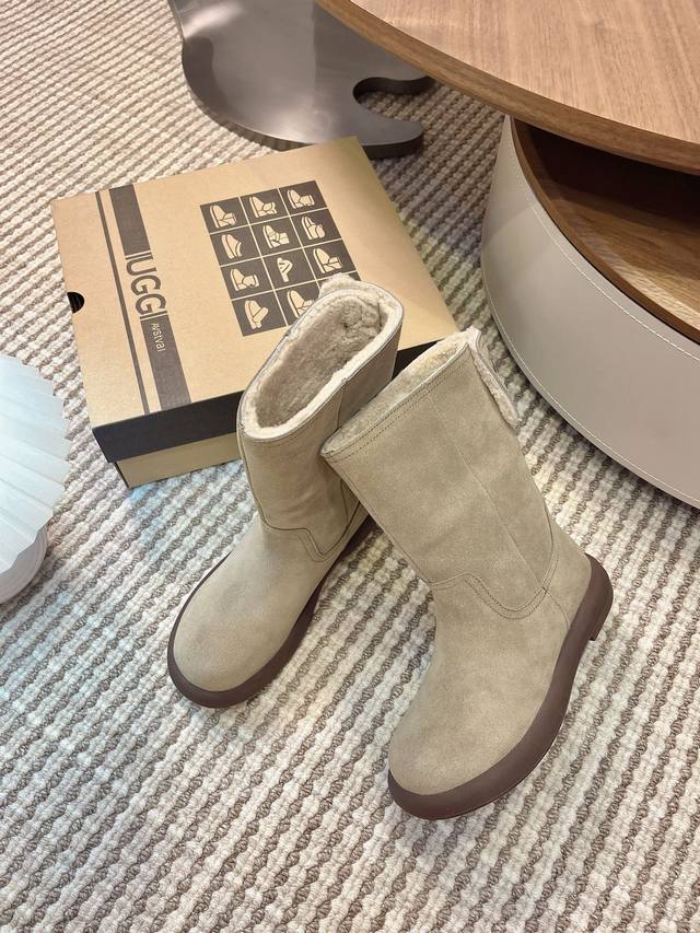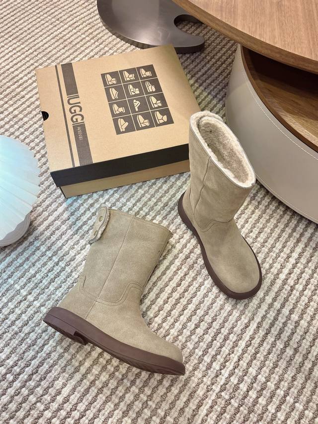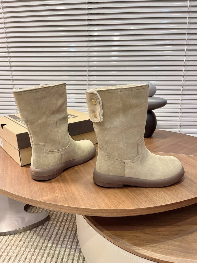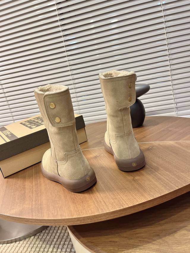 实价: 短筒雪地靴 :秒变大长腿 两穿可翻毛 :后根精致金属点缀时尚基因 :牛皮鞋面内里羊毛一体高筒立起保暖有型, :靴筒放下秒变慵懒短靴 两种风格随意切换 奶