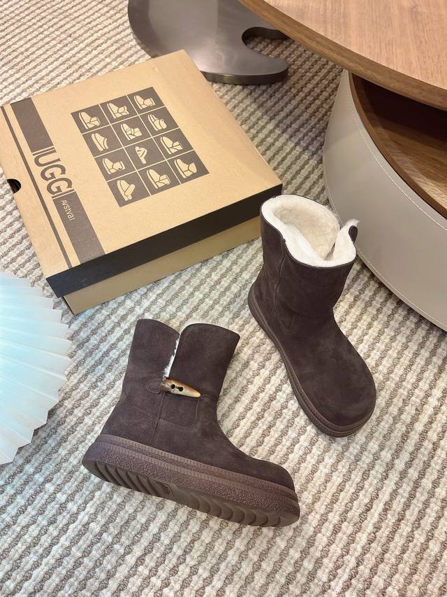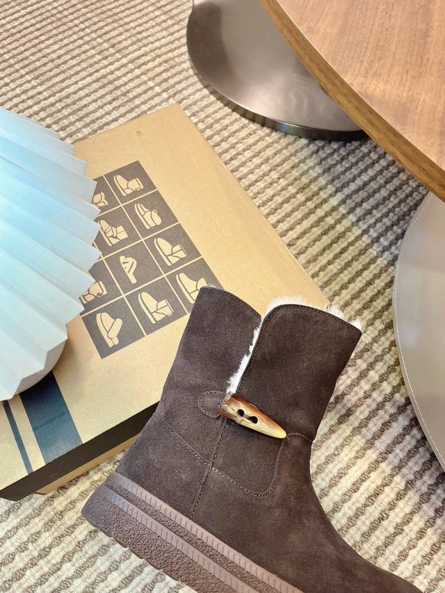 / 实价: 短筒雪地靴 :靴筒侧边牛角扣设计超显大长腿 :头层牛皮鞋面内里羊毛一体 :防滑耐磨 毛茸茸慵懒风 秋冬色系搭 配时尚元素爆棚 鞋面:羊皮毛一体 尺码:3