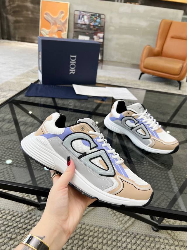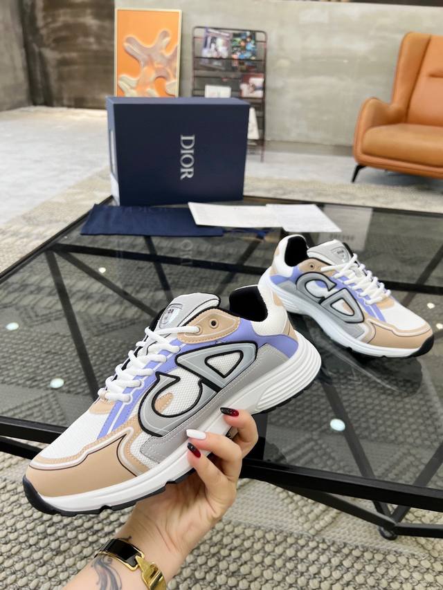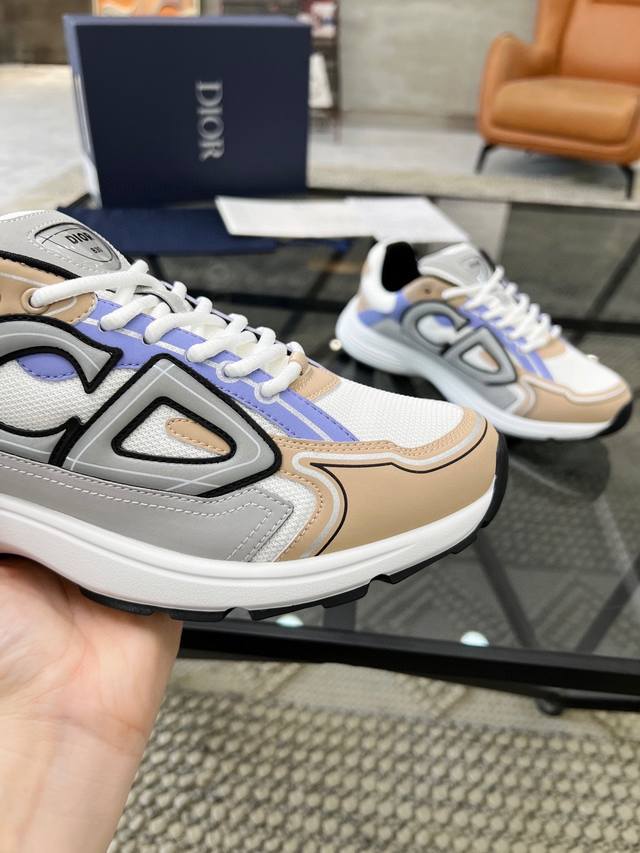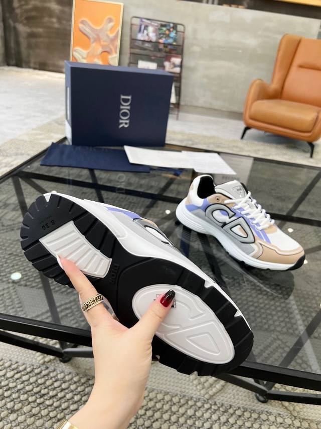 实价: Di~R 运动跑鞋 新款运动鞋以现代线条彰显时尚风范,运动鞋动感十足而不失优雅,将轻盈质感与灵活性能集于一身,尽显品牌精湛工艺,鞋面采用进口网眼织物科技面料拼接 鞋舌上的Dio*标志 ,鞋身两侧有显眼的反光体字母Cd立体Logo标识表明身份,原版定制透气内里 原版开模大底格外轻盈的雕刻效果橡胶鞋底搭配标志性的点缀提升格调,内部弹力细节塑造理想的舒适穿着体验。厚底高约3.5Cm 可与各式休闲造型搭配,彰显时尚现代的运动风范。38-45码