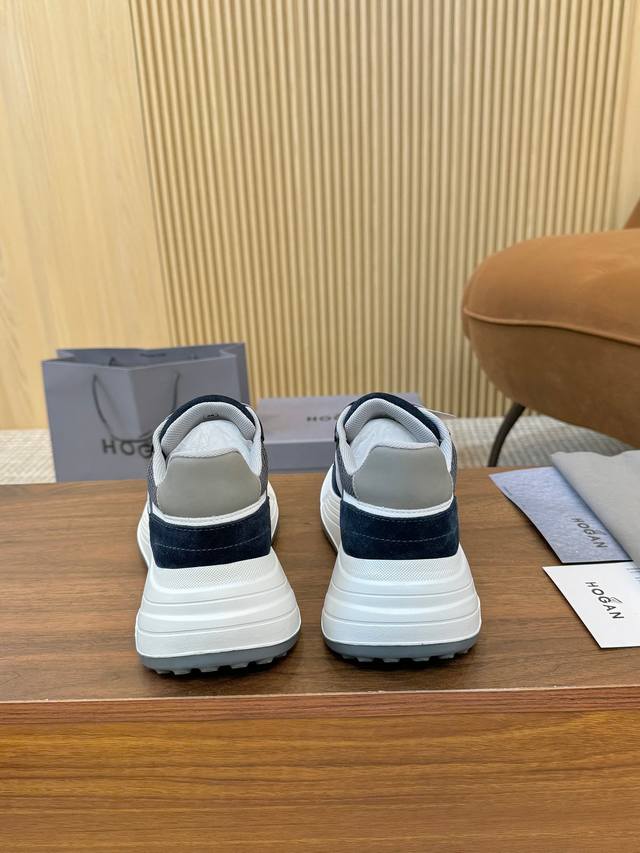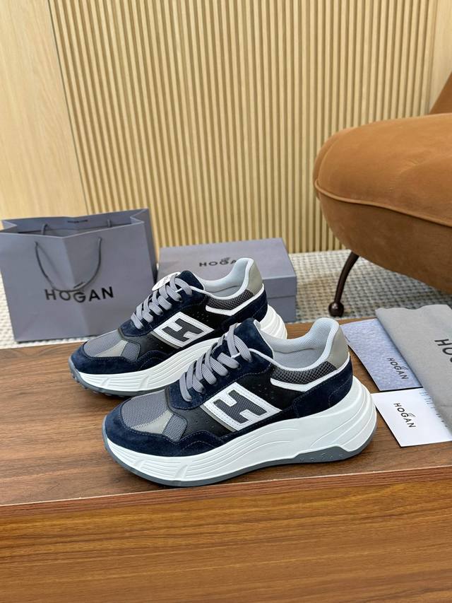 实价 Hogan 霍根 2025新款情侣款转图必爆 H-Stripes系列情侣款厚底老爹鞋飞艇鞋休闲运动鞋。 DDD 顶级版本原版购入开发做货 DDD 此款H-Stripes系列运动鞋采用撞色高弹厚底增高设计,令整鞋焕发新意活力,穿梭型格畅想,抢占视线焦点,再掀现代感都市风潮。 DDD 面料:原版定制进口牛皮材质 DDD 内里:原版进口透气网 DDD 鞋底:独家开模超轻高弹材质 DDD 底厚:约4.5Cm DDD 码数:女36-44, 35 45定做不退不换 DDD