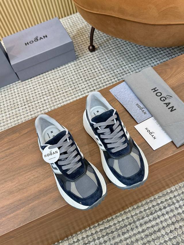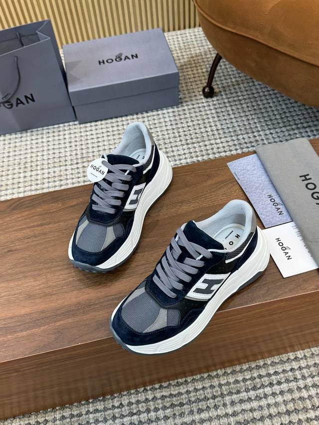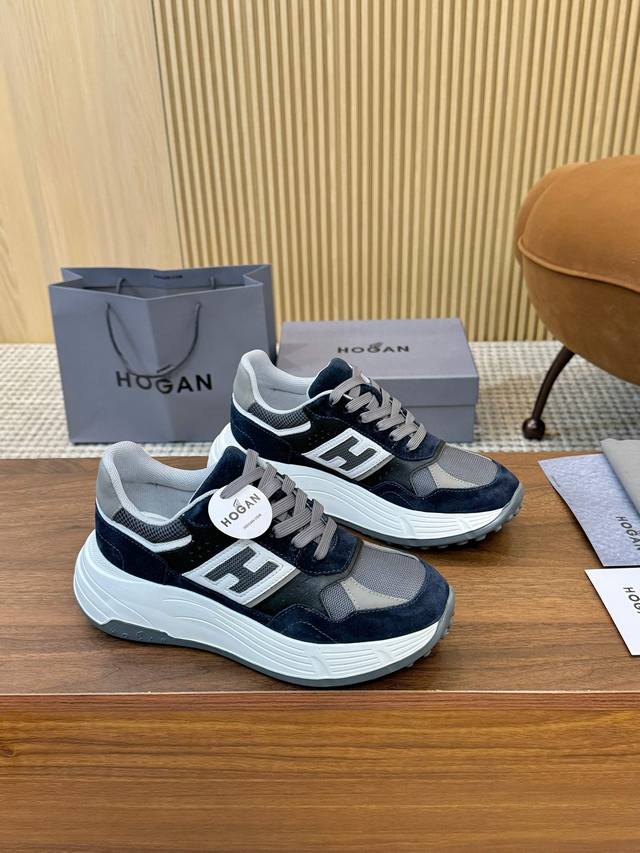 实价 Hogan 霍根 2025新款情侣款转图必爆 H-Stripes系列情侣款厚底老爹鞋飞艇鞋休闲运动鞋。 顶级版本原版购入开发做货 此款H-Stripes系