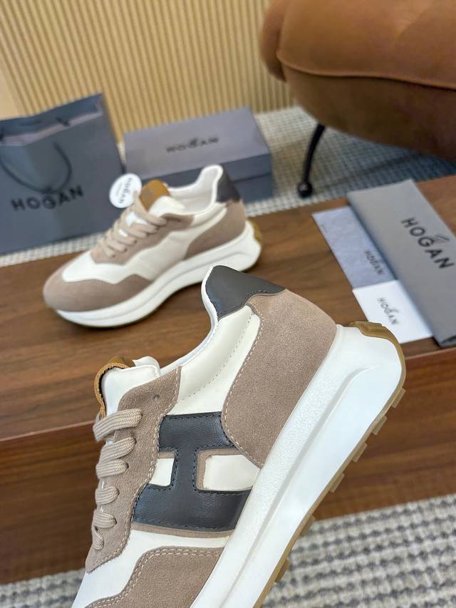 实价 Hogan 霍根 2025新款转图必爆 H-Stripes系列情侣款厚底老爹鞋飞艇鞋休闲运动鞋。 DDD 顶级版本原版购入开发做货 DDD 此款H-Stripes系列运动鞋采用撞色高弹厚底增高设计,令整鞋焕发新意活力,穿梭型格畅想,抢占视线焦点,再掀现代感都市风潮。 DDD 面料:原版定制进口牛皮材质 DDD 内里:原版牛皮里 DDD 鞋底:独家开模超轻高弹材质 DDD 底厚:约4.5Cm DDD 码数:女35-45 DDD