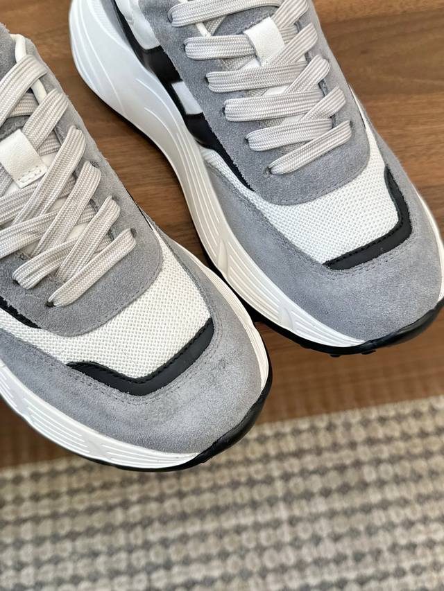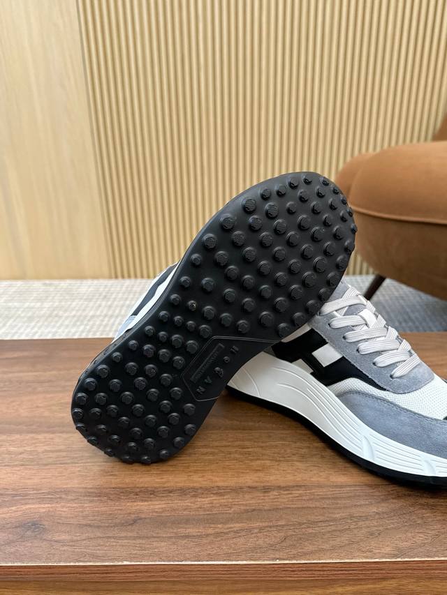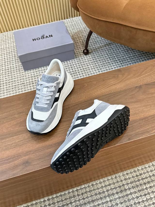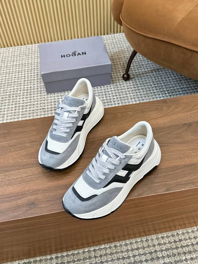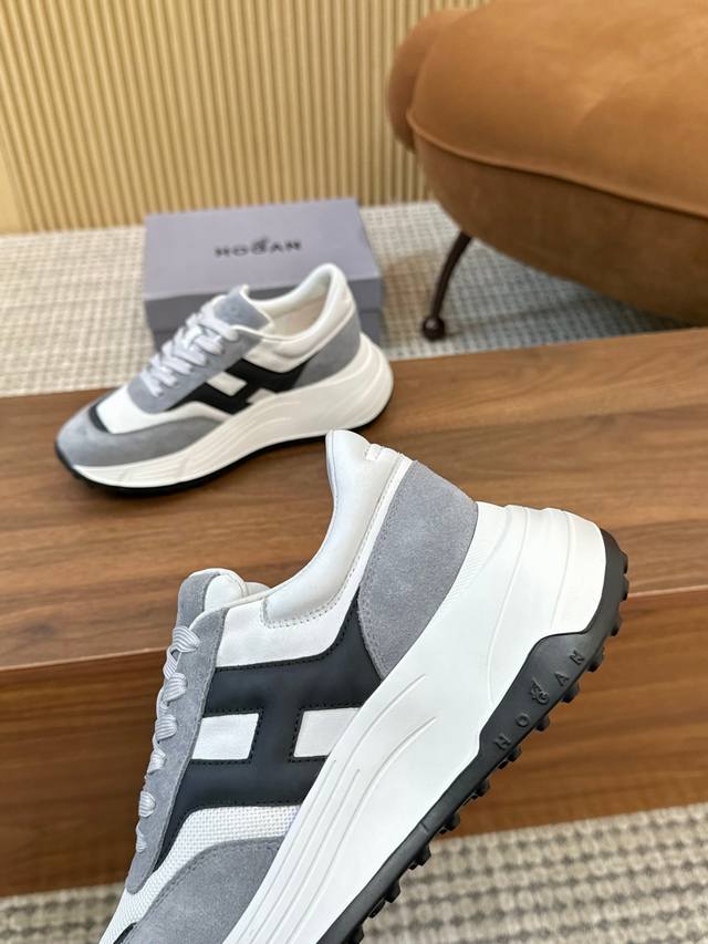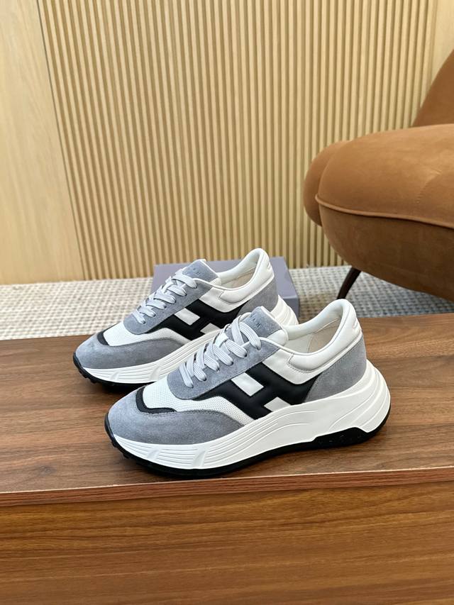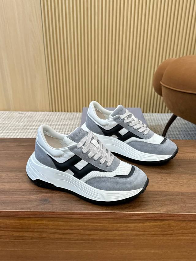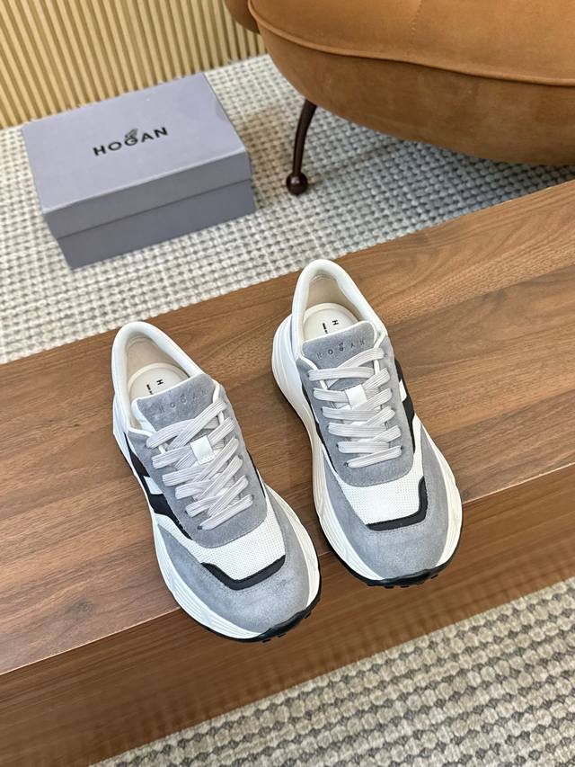 实价 Hogan 霍根 2025新款转图必爆 H-Stripes系列情侣款厚底老爹鞋飞艇鞋休闲运动鞋。 DDD 顶级版本原版购入开发做货 DDD 此款H-Stripes系列运动鞋采用撞色高弹厚底增高设计,令整鞋焕发新意活力,穿梭型格畅想,抢占视线焦点,再掀现代感都市风潮。 DDD 面料:原版定制进口牛皮材质 DDD 内里:原版牛皮里 DDD 鞋底:独家开模超轻高弹材质 DDD 底厚:约4.5Cm DDD 码数:女36-44, 35 45定做不退不换 DDD