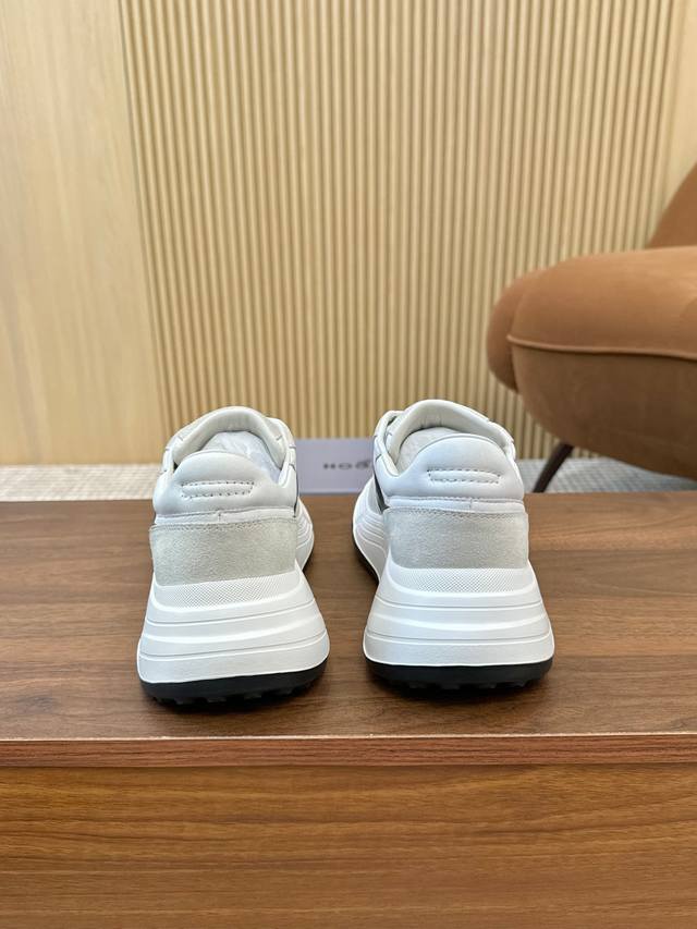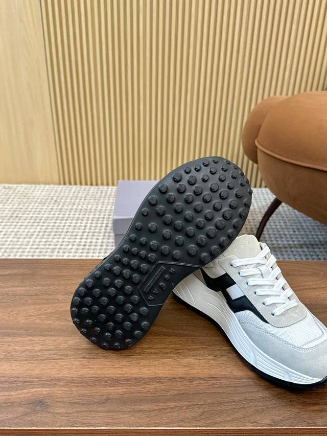 实价 Hogan 霍根 2025新款转图必爆 H-Stripes系列情侣款厚底老爹鞋飞艇鞋休闲运动鞋。 DDD 顶级版本原版购入开发做货 DDD 此款H-Stripes系列运动鞋采用撞色高弹厚底增高设计,令整鞋焕发新意活力,穿梭型格畅想,抢占视线焦点,再掀现代感都市风潮。 DDD 面料:原版定制进口牛皮材质 DDD 内里:原版牛皮里 DDD 鞋底:独家开模超轻高弹材质 DDD 底厚:约4.5Cm DDD 码数:女36-44, 35 45定做不退不换 DDD
