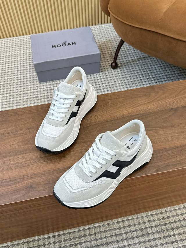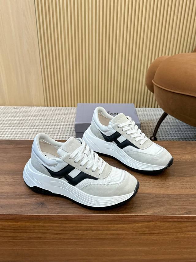实价 Hogan 霍根 2025新款转图必爆 H-Stripes系列情侣款厚底老爹鞋飞艇鞋休闲运动鞋。 顶级版本原版购入开发做货 此款H-Stripes系列运动