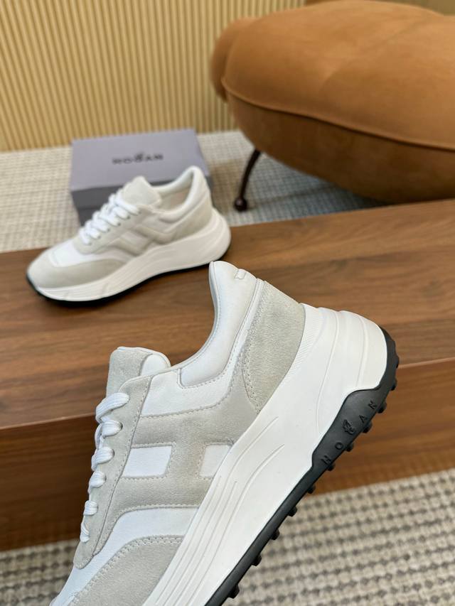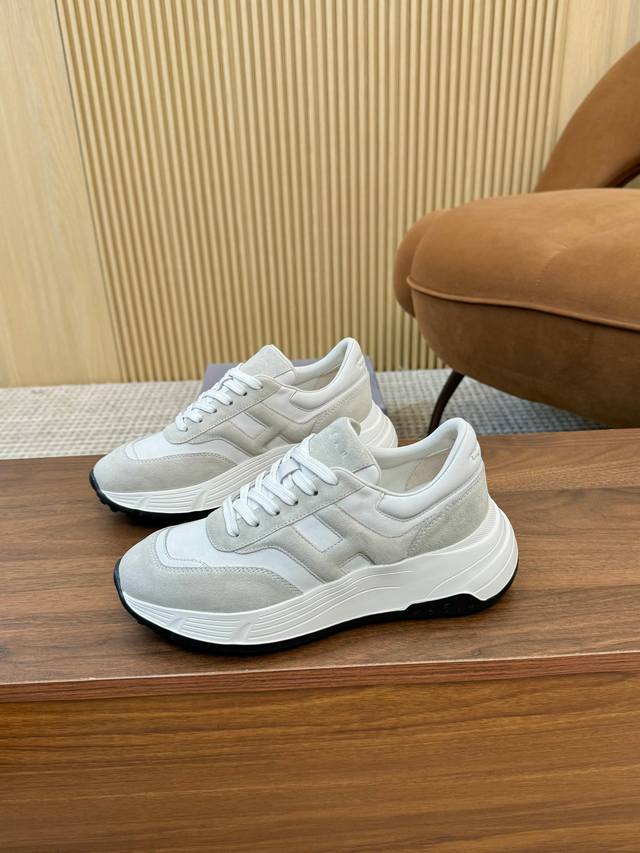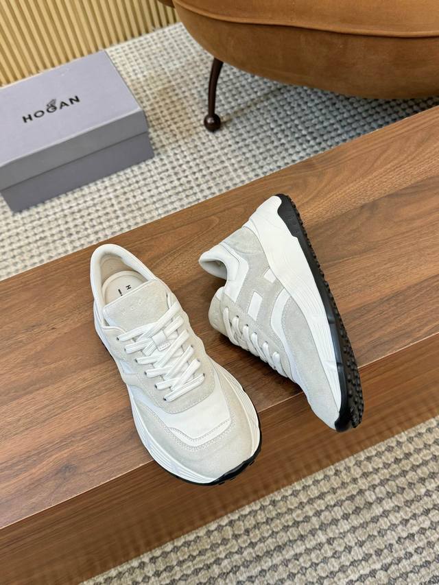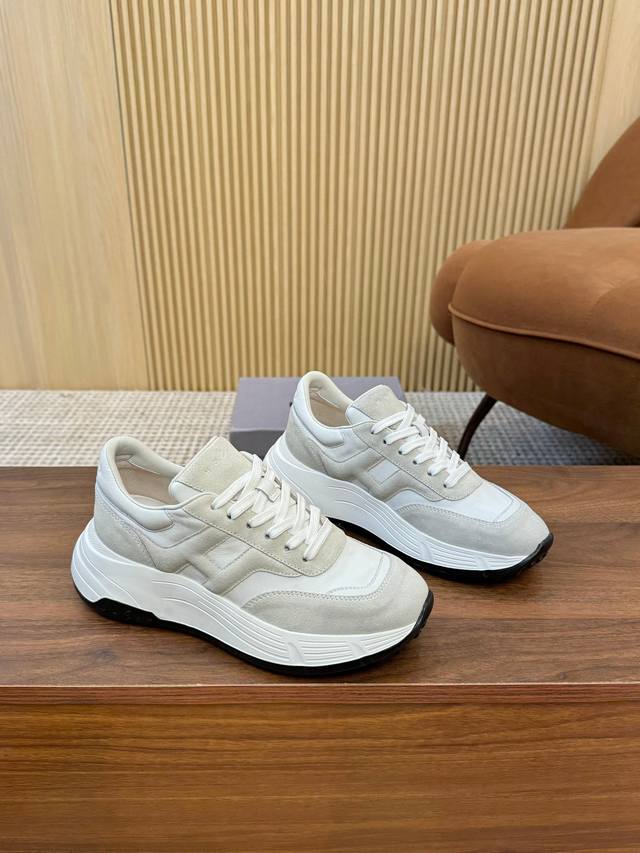 实价 Hogan 霍根 2025新款转图必爆 H-Stripes系列情侣款厚底老爹鞋飞艇鞋休闲运动鞋。 DDD 顶级版本原版购入开发做货 DDD 此款H-Stripes系列运动鞋采用撞色高弹厚底增高设计,令整鞋焕发新意活力,穿梭型格畅想,抢占视线焦点,再掀现代感都市风潮。 DDD 面料:原版定制进口牛皮材质 DDD 内里:原版牛皮里 DDD 鞋底:独家开模超轻高弹材质 DDD 底厚:约4.5Cm DDD 码数:女36-44, 35 45定做不退不换 DDD