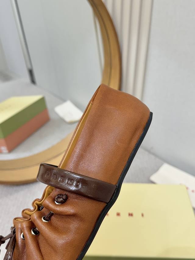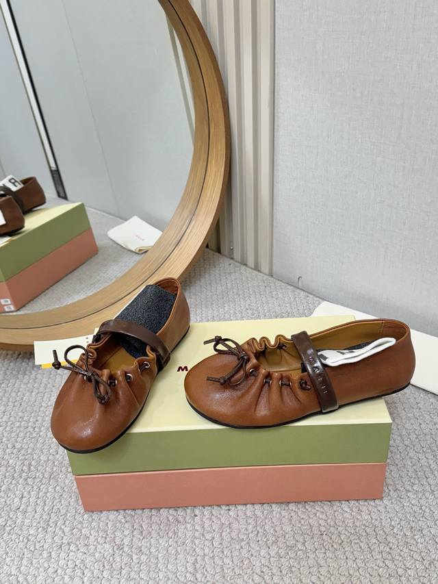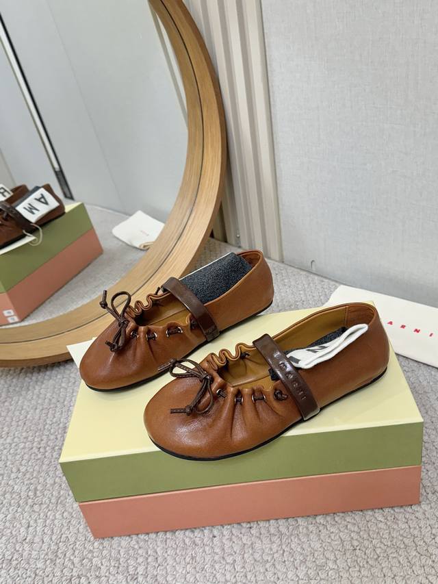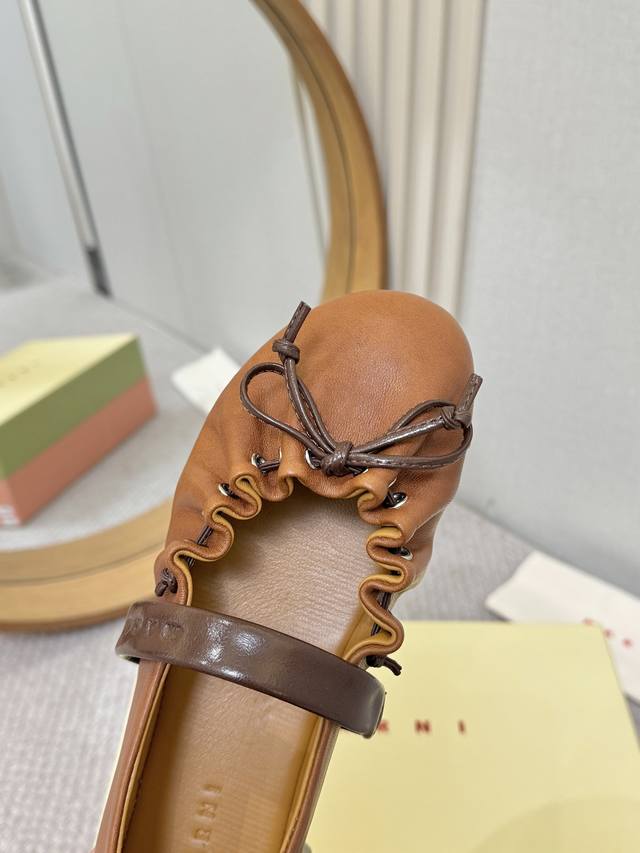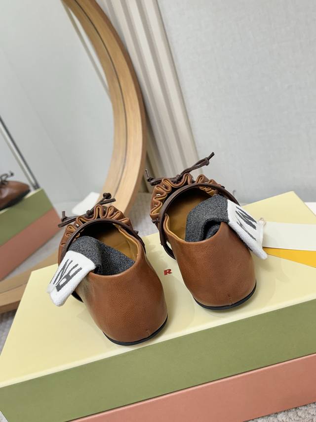实价: Marni 26Ss芭蕾舞鞋,梦中情鞋,一脚踩在云朵上 软皮褶皱感木耳边蝴蝶结设计确实一眼心动呀。充松弛又精致。配西装是懒散知识分子,配长裙是温柔本身上脚超舒服呀,运动鞋一样软软糯糯的脚感 里外羊皮 35-40码 DDD