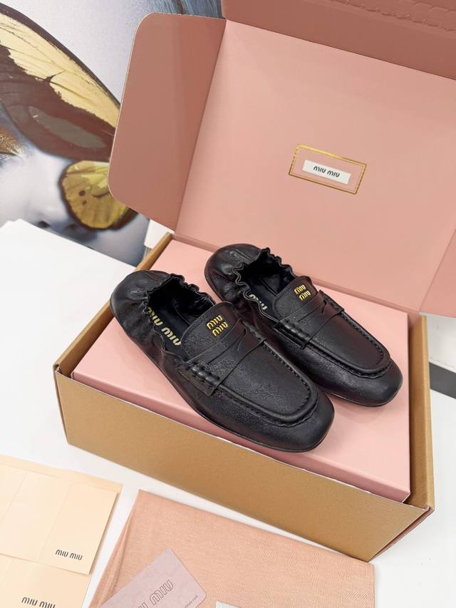/ 实价: Miu Miu全新Nappa羊皮抽褶乐福鞋 以更复古的造型重新打造经典乐福鞋,Miu Miu新款羊皮后跟抽褶乐福鞋采用Nappa皮革制成彰显优雅复古气质