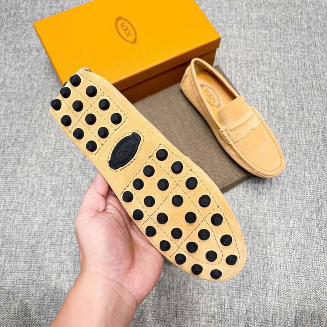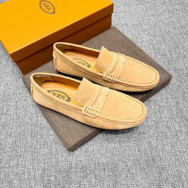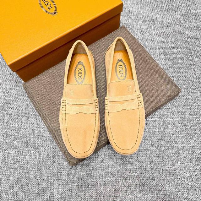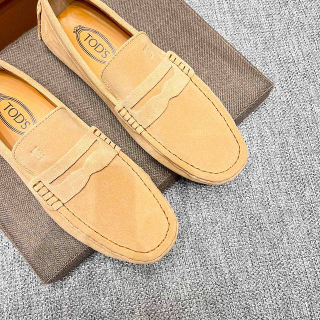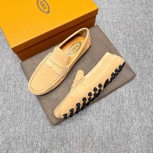 工厂p价 男士豆豆鞋 2025官网同步 市场顶级版本 磨砂皮 杏色牛里 原版包装 尺码 :38-45