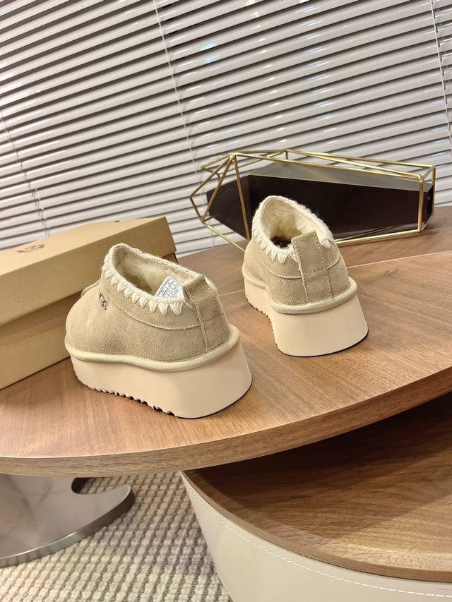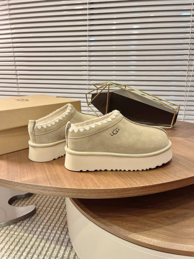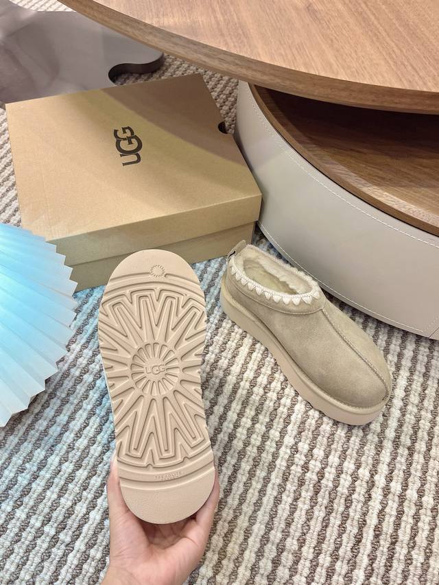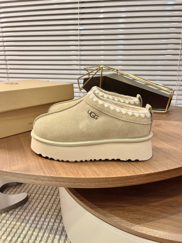 实价 DDD Ugg Tazz油叽叽#秋冬新品塔茨Tazz厚底羊毛 毛拖鞋一脚蹬毛毛鞋雪地靴 DDD 新款毛拖采用民族风编织刺绣复古又时髦,超舒适一脚蹬,超多明星在穿,Ins小红书有多火不用我多说,一到季节就断货的节奏! 隆丰厚实皮毛一体!这款搭茨和经典的雪地靴不同,它的鞋型更倾向于半托一脚蹬,穿脱方便舒适,是很多懒癌星人的心头好 DDD 面料: 原版定制进口头层牛皮 DDD 内里: 原版定制保暖羊毛 DDD 大底: 原版开模超轻发泡材质 DDD 底厚: 4.5Cm DDD Size: 女款35-40 D