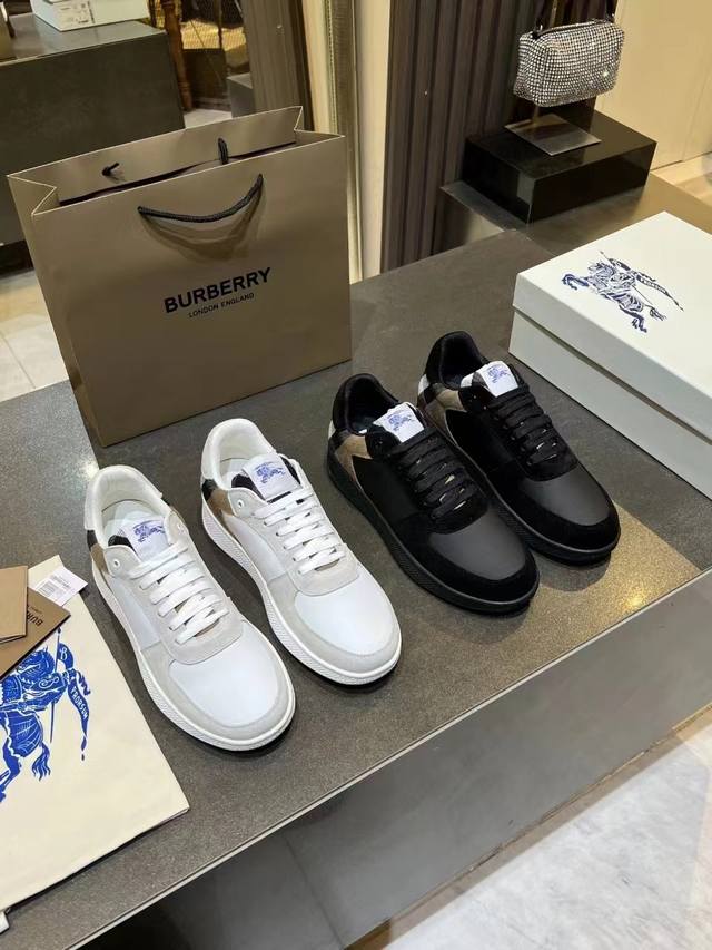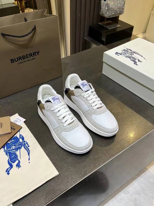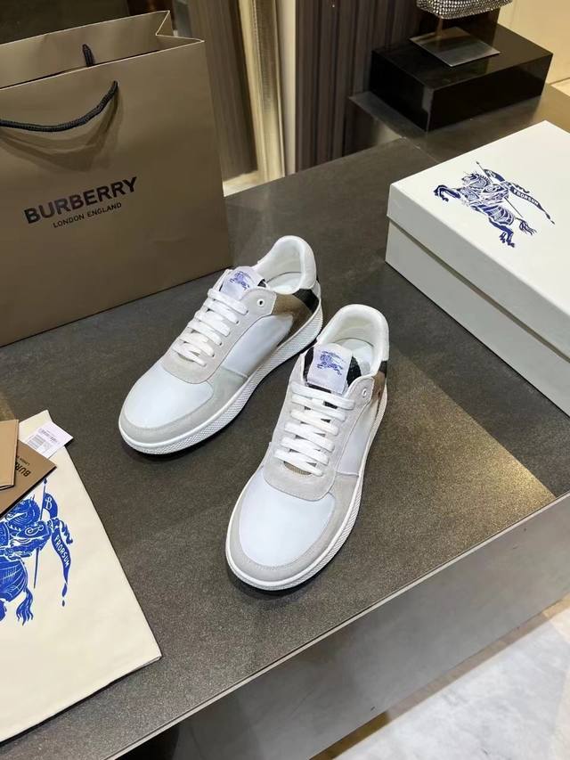 / 实价:330 专柜最新款,意大利制造的棉质混纺运动鞋,饰有博柏利格纹。网眼布衬里款式采用格子鞋带和橡胶鞋底,刻有博柏利档案字样。博柏利经典的一部分,独特的博柏利