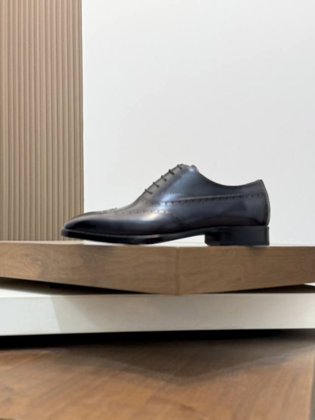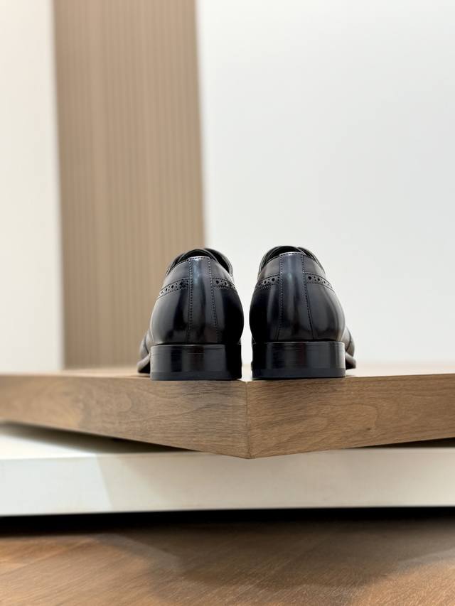 / 家男鞋到货,顶级皮胚手工上色的工艺,小牛皮透气内里,真皮大底后置橡胶贴皮,防水沿条上更是有铆钉装饰,估计设计师意在画龙点睛吧。这次数量不多,咱俩正装鞋品质不多提