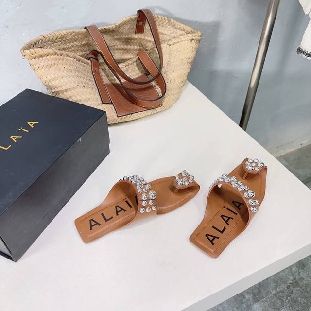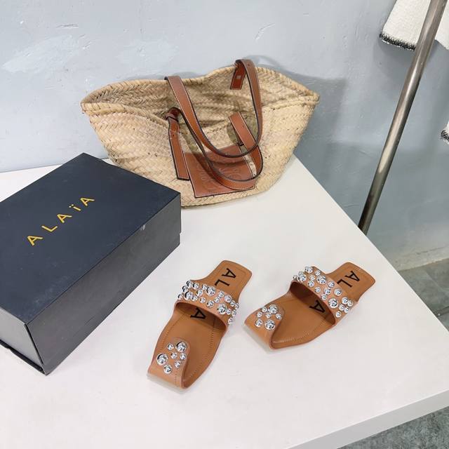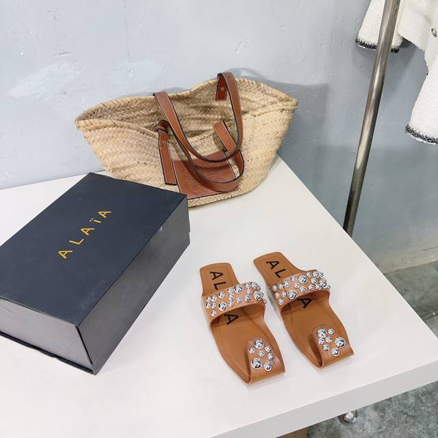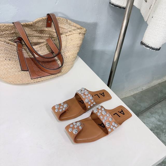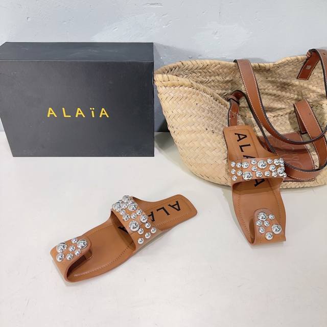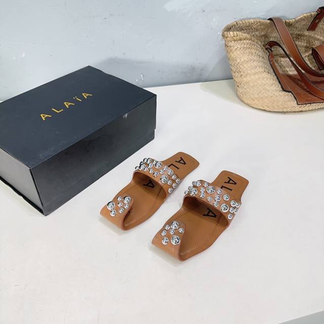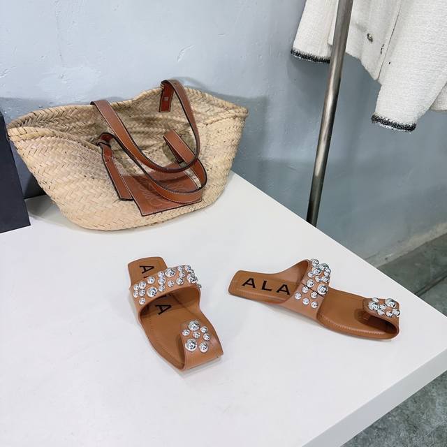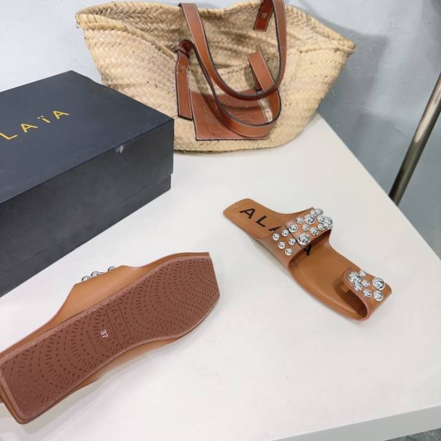 / 小众潮牌alaia 2024 Ss秋冬新款圆珠五金扣饰简易平底拖鞋!首发独家上新!包头露趾拖鞋凉鞋!极简主义炒鸡柔软舒适!时髦精绝对不能错过的必入款,银色点缀颗