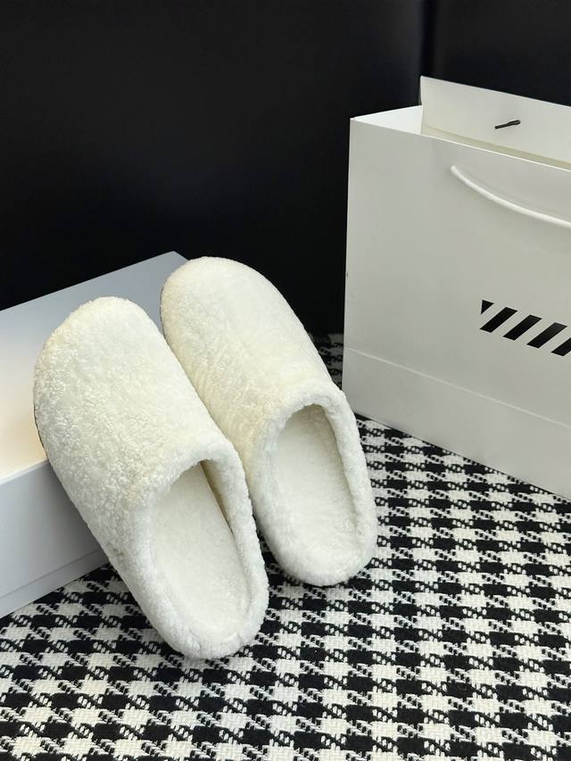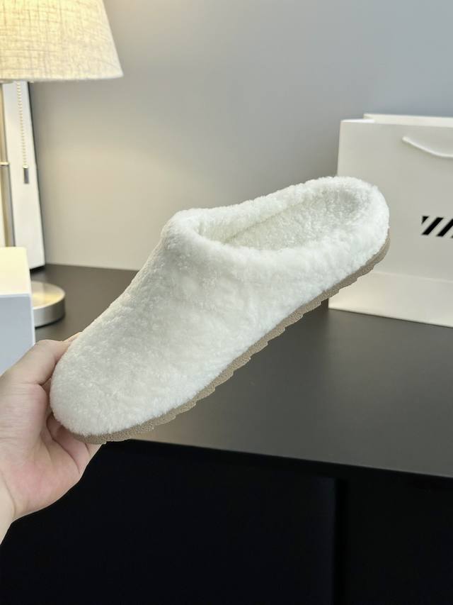 小众羊毛拖鞋 打造舒适而质感的经典鞋履。原版一比一开模,大气的造型与经千百次调整的腰位线条,独具经典。 圆圆的鞋头特别显腿细 鞋面材质:绒面牛皮 内里材质:A级