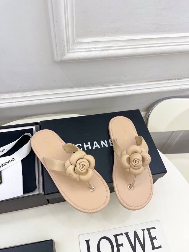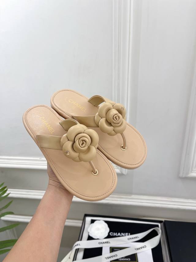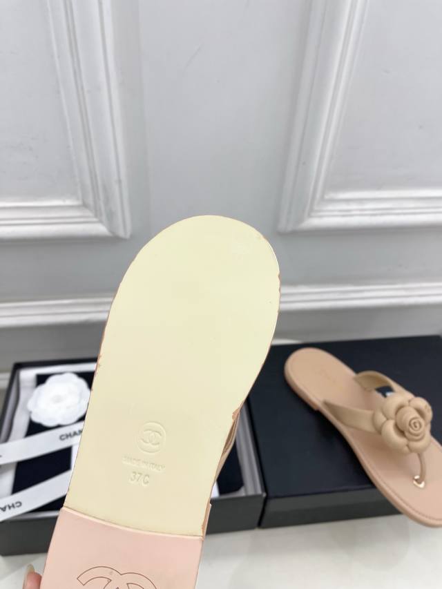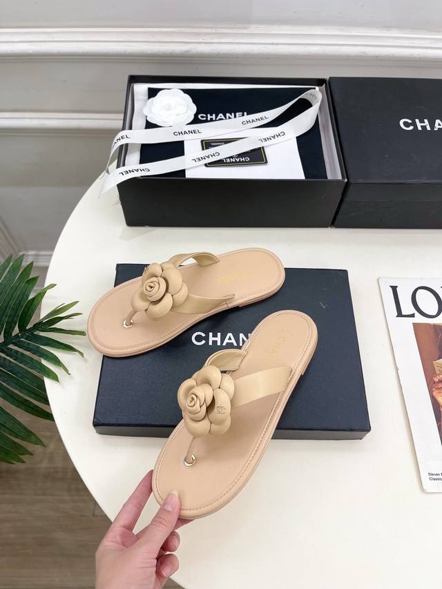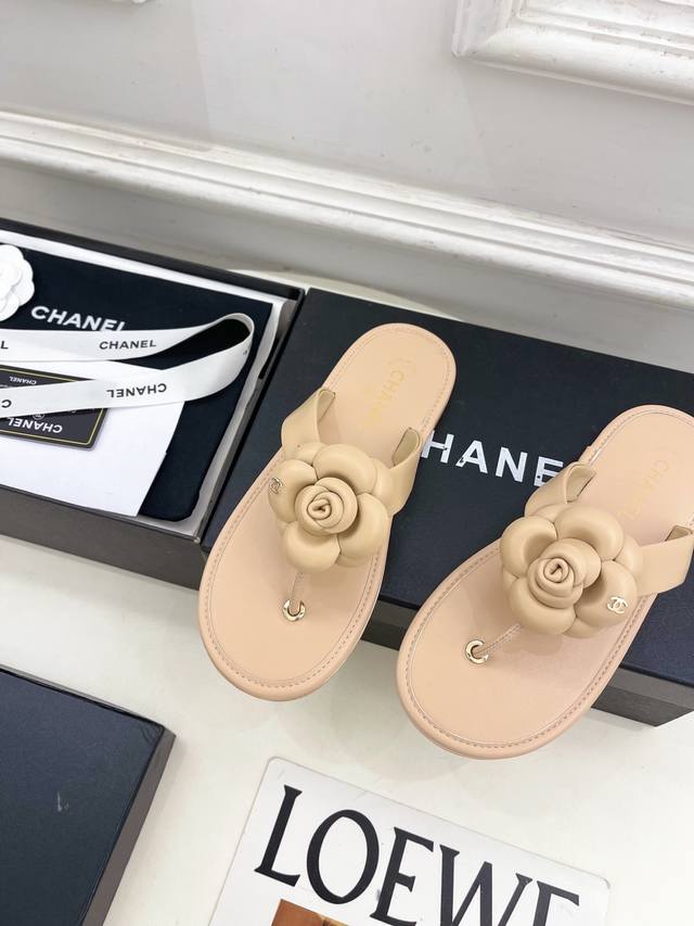 小香 25 DDD 2025早春新品 专柜经典走秀款 小香双C山茶花夹脚人字拖鞋 系列上新 DDD Bs时尚圈的绝绝子 搭配将演绎着细致 极简 永不褪去的经典元素 展现与众不同的穿搭风格美到无话可说 夏季必入款 DDD T DDD 鞋面:高定制原版皮料 DDD 内里:进口丝绸羊皮里 DDD 大底:原版意大利真皮大底 DDD 跟高:平底 DDD 鞋码: 35-39 40.41定制不退换 DDD 出厂价pp: DDD