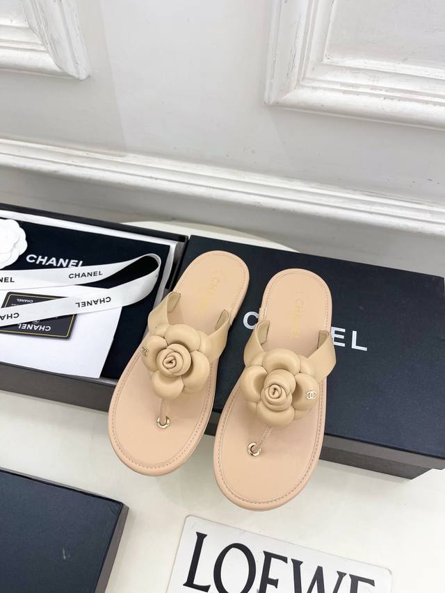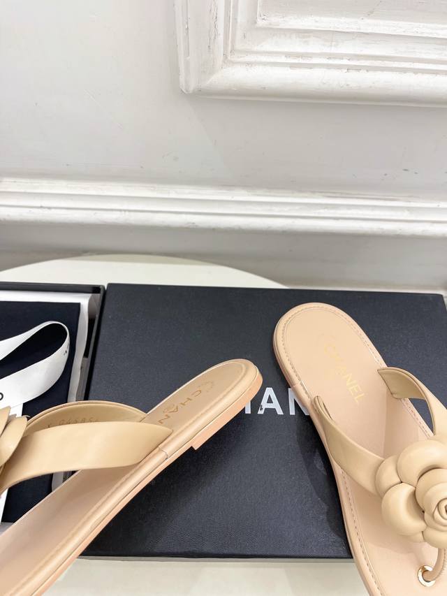 / 小香 25 2025早春新品 专柜经典走秀款 小香双C山茶花夹脚人字拖鞋 系列上新 Bs时尚圈的绝绝子 搭配将演绎着细致 极简 永不褪去的经典元素 展现与众不同