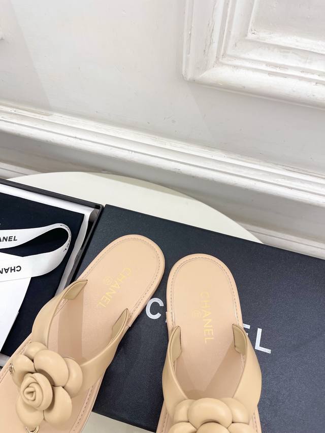 小香 25 2025早春新品 专柜经典走秀款 小香双C山茶花夹脚人字拖鞋 系列上新 Bs时尚圈的绝绝子 搭配将演绎着细致 极简 永不褪去的经典元素 展现与众不同