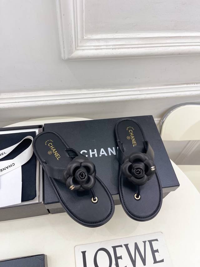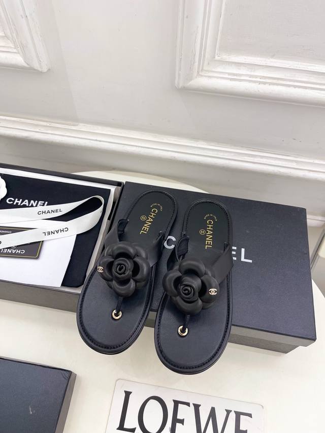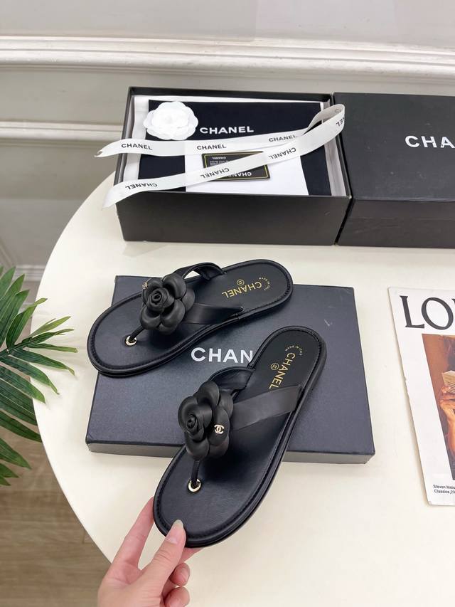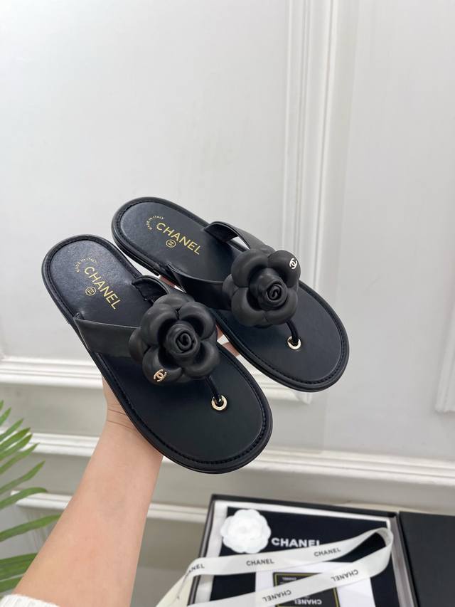 小香 25 DDD 2025早春新品 专柜经典走秀款 小香双C山茶花夹脚人字拖鞋 系列上新 DDD Bs时尚圈的绝绝子 搭配将演绎着细致 极简 永不褪去的经典元素 展现与众不同的穿搭风格美到无话可说 夏季必入款 DDD T DDD 鞋面:高定制原版皮料 DDD 内里:进口丝绸羊皮里 DDD 大底:原版意大利真皮大底 DDD 跟高:平底 DDD 鞋码: 35-39 40.41定制不退换 DDD 出厂价pp: DDD
