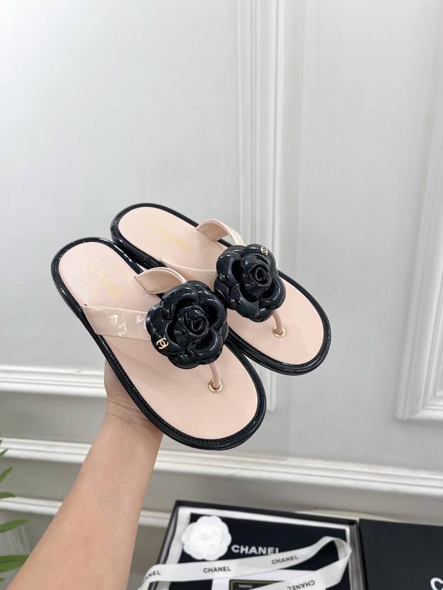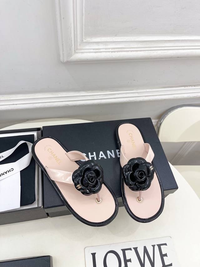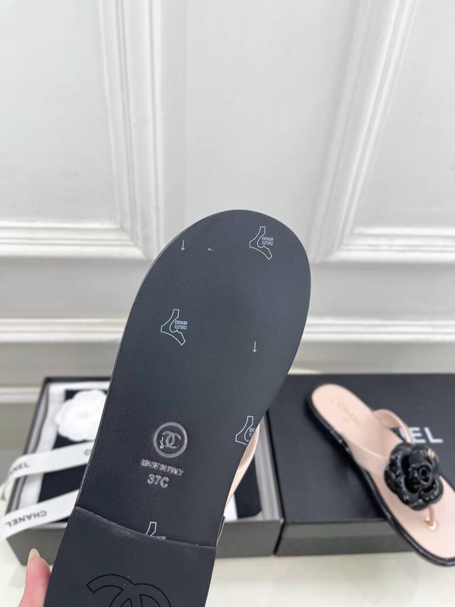 小香 25 DDD 2025早春新品 专柜经典走秀款 小香双C山茶花夹脚人字拖鞋 系列上新 DDD Bs时尚圈的绝绝子 搭配将演绎着细致 极简 永不褪去的经典元素 展现与众不同的穿搭风格美到无话可说 夏季必入款 DDD T DDD 鞋面:高定制原版皮料 DDD 内里:进口丝绸羊皮里 DDD 大底:原版意大利真皮大底 DDD 跟高:平底 DDD 鞋码: 35-39 40.41定制不退换 DDD 出厂价pp: DDD