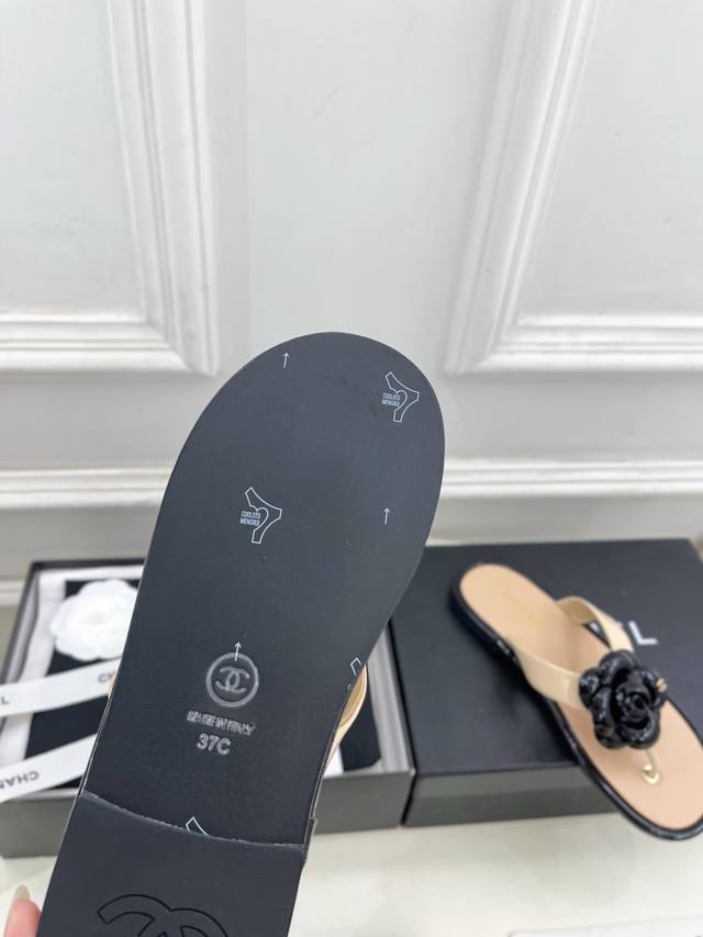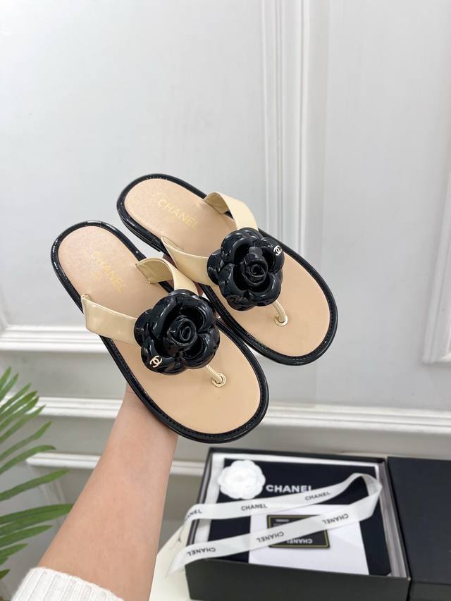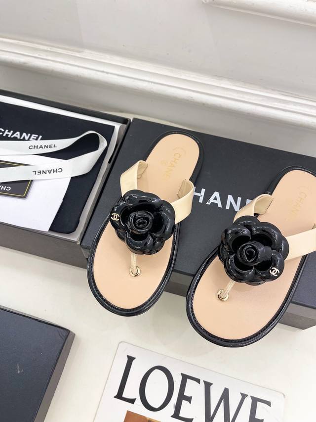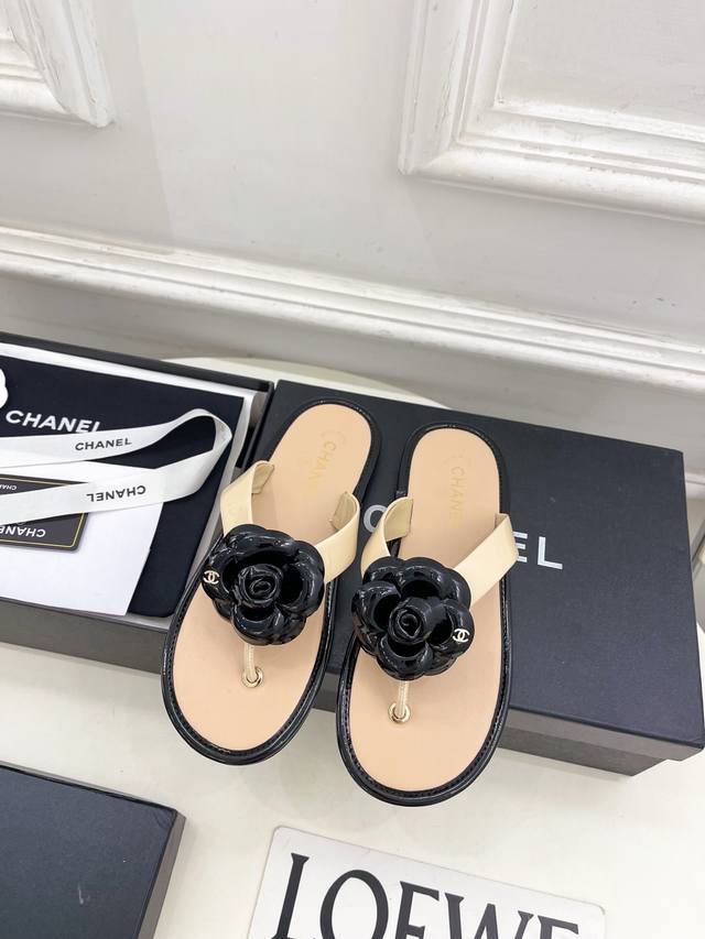 小香 25 DDD 2025早春新品 专柜经典走秀款 小香双C山茶花夹脚人字拖鞋 系列上新 DDD Bs时尚圈的绝绝子 搭配将演绎着细致 极简 永不褪去的经典元素 展现与众不同的穿搭风格美到无话可说 夏季必入款 DDD T DDD 鞋面:高定制原版皮料 DDD 内里:进口丝绸羊皮里 DDD 大底:原版意大利真皮大底 DDD 跟高:平底 DDD 鞋码: 35-39 40.41定制不退换 DDD 出厂价pp: DDD