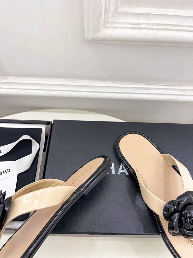 / 小香 25 2025早春新品 专柜经典走秀款 小香双C山茶花夹脚人字拖鞋 系列上新 Bs时尚圈的绝绝子 搭配将演绎着细致 极简 永不褪去的经典元素 展现与众不同