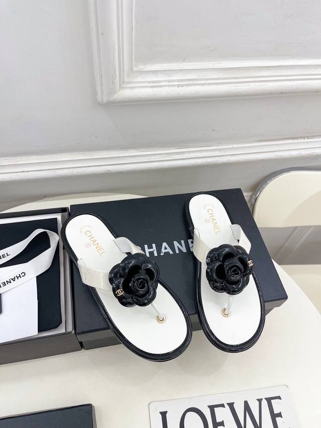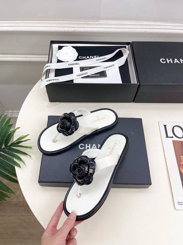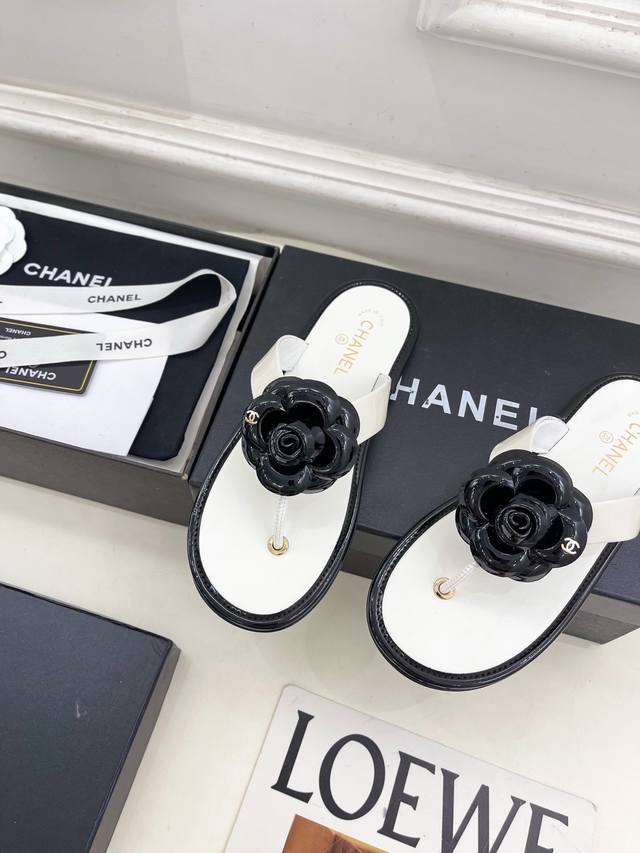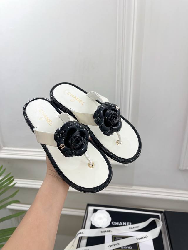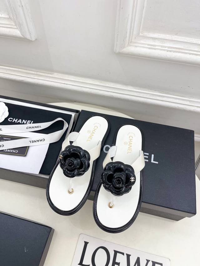 / 小香 25 2025早春新品 专柜经典走秀款 小香双C山茶花夹脚人字拖鞋 系列上新 Bs时尚圈的绝绝子 搭配将演绎着细致 极简 永不褪去的经典元素 展现与众不同