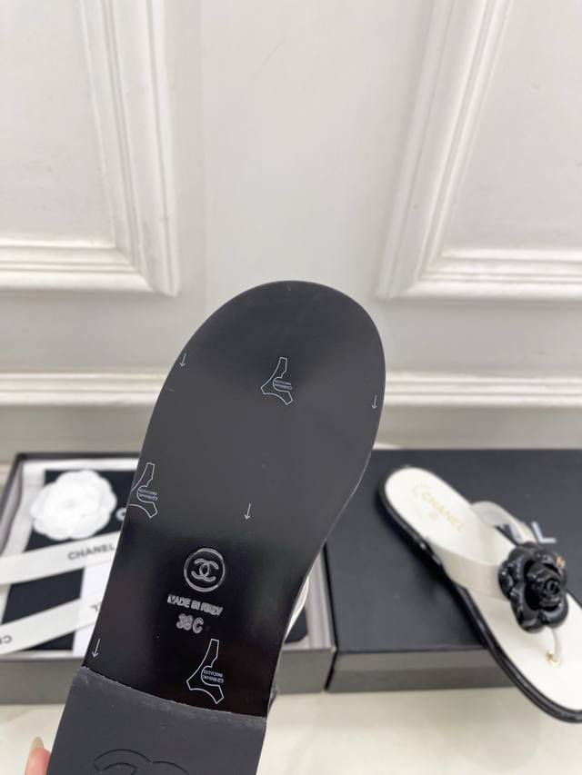 小香 25 DDD 2025早春新品 专柜经典走秀款 小香双C山茶花夹脚人字拖鞋 系列上新 DDD Bs时尚圈的绝绝子 搭配将演绎着细致 极简 永不褪去的经典元素 展现与众不同的穿搭风格美到无话可说 夏季必入款 DDD T DDD 鞋面:高定制原版皮料 DDD 内里:进口丝绸羊皮里 DDD 大底:原版意大利真皮大底 DDD 跟高:平底 DDD 鞋码: 35-39 40.41定制不退换 DDD 出厂价pp: DDD