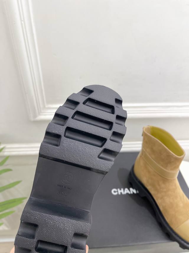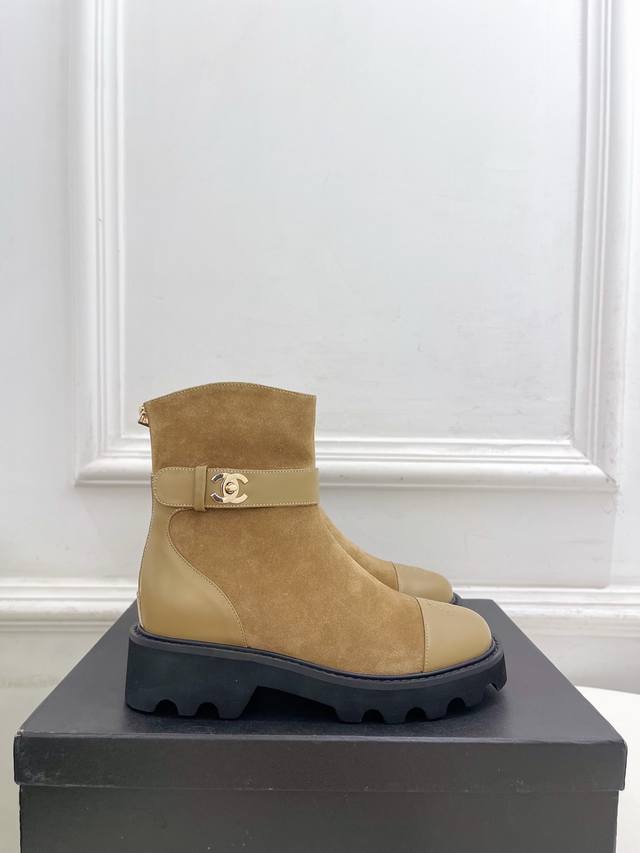 小香 25 2025 秋冬新品 专柜经典走秀款 小香双C拼色后拉链厚底短靴 系列上新 Bs时尚圈的绝绝子 搭配将演绎着细致 极简 永不褪去的经典元素 展现与众不