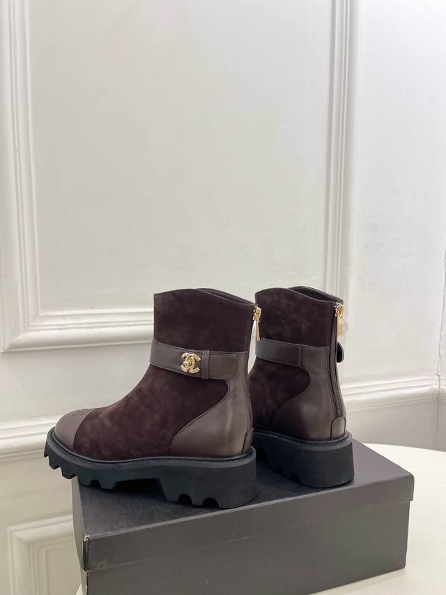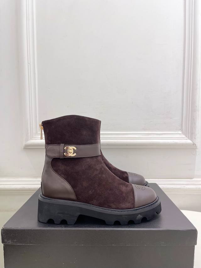 小香 25 2025 秋冬新品 专柜经典走秀款 小香双C拼色后拉链厚底短靴 系列上新 Bs时尚圈的绝绝子 搭配将演绎着细致 极简 永不褪去的经典元素 展现与众不