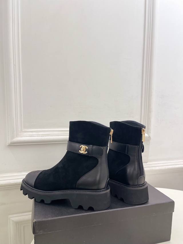 小香 25 2025 秋冬新品 专柜经典走秀款 小香双C拼色后拉链厚底短靴 系列上新 Bs时尚圈的绝绝子 搭配将演绎着细致 极简 永不褪去的经典元素 展现与众不