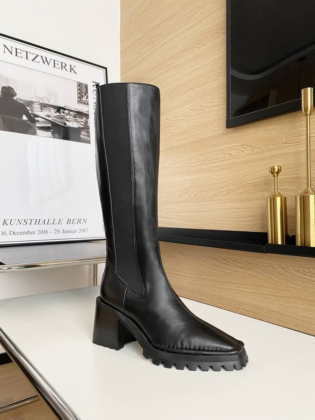 工厂P价 女装女鞋 运动原单亚历山大.王 Alexander Wang 秋冬Parker 方头凸凹鞋底15吋长靴,采用进口全粒面牛皮作面料,近年最流行的细长方头设计,Parker Lug Sole Boot切尔西靴,今年必备的一款长靴,上脚显瘦又不失大王女人的霸气,御姐范十足! -进口全粒面牛皮! -内里+垫脚进口牛皮+羊皮 -层皮包裹粗跟 -San Cris Pino 手工沿条工艺 -意大利进口真皮对接橡胶凸凹底,耐磨防滑 -跟高7.5Cm -官网统一货号30121B010001 -尺码:35--39