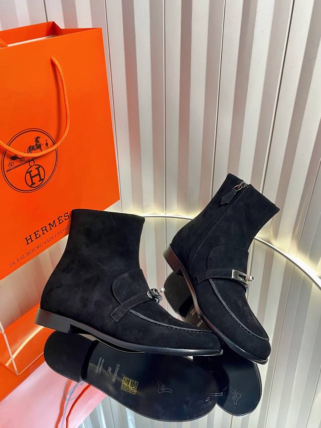 工厂p价 女装女鞋 运动原单,时尚气质短靴,2025爱新款Kelly扣平底短靴,酷飒有范好穿女靴,侧拉链设计穿脱超方便,日常搭配牛仔裤,连衣裙都很有格调,实物实拍! DDD Size:35~40 41、42定做 DDD