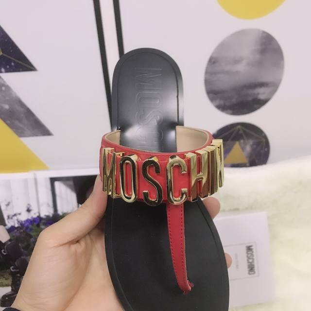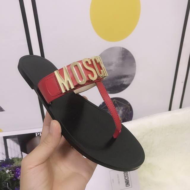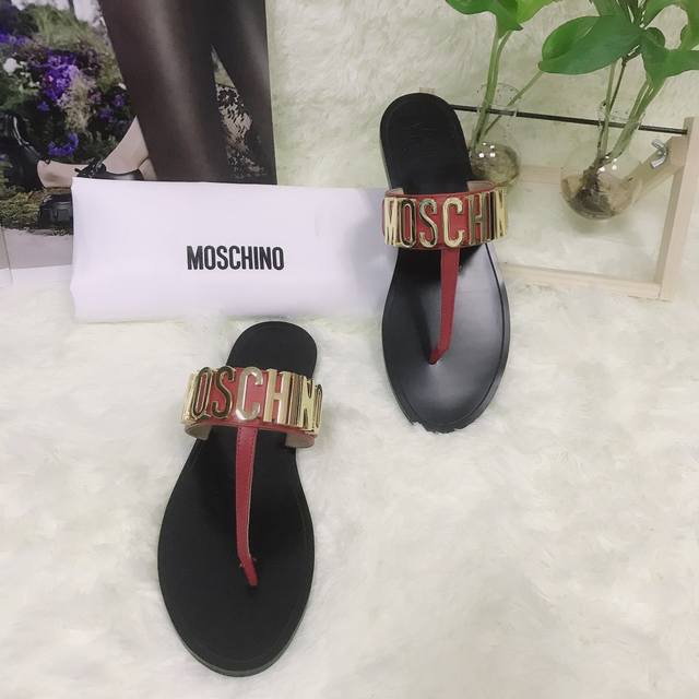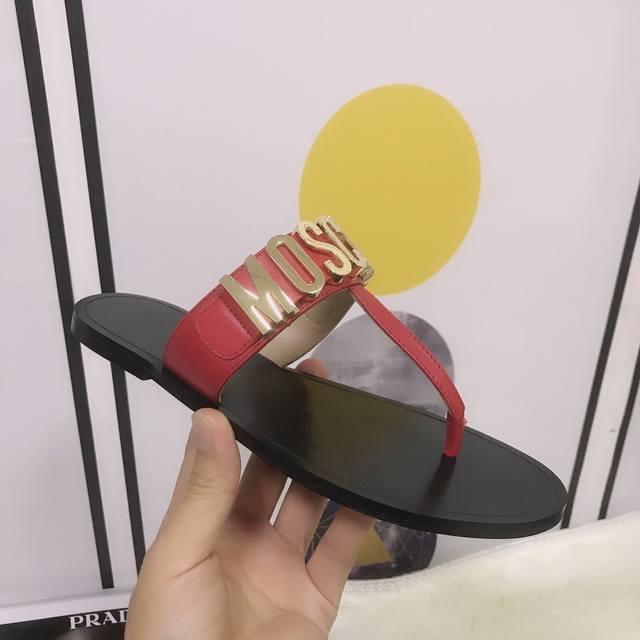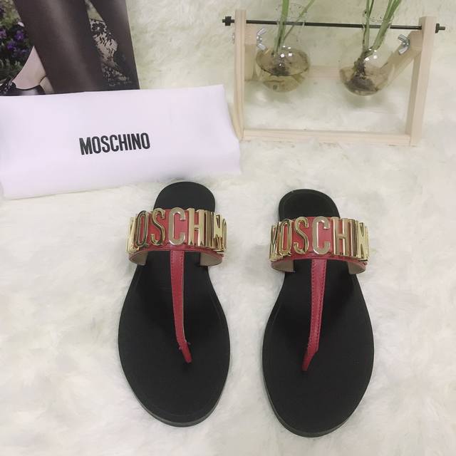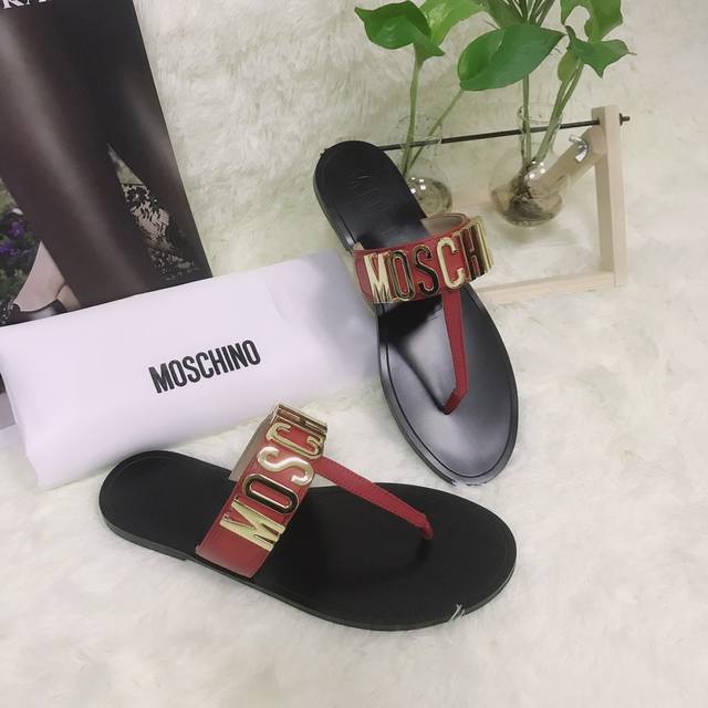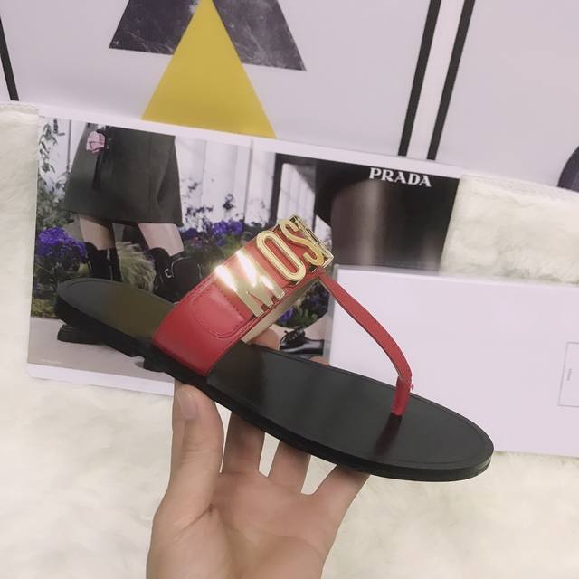 工厂p价 女装女鞋 运动原单莫斯奇诺 巨作平底夹脚凉鞋,黑色,红色,米白色,粉红色,金色,银色,玫瑰金,杏色,35-45,中底大底橡胶 DDD