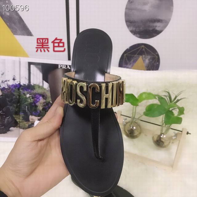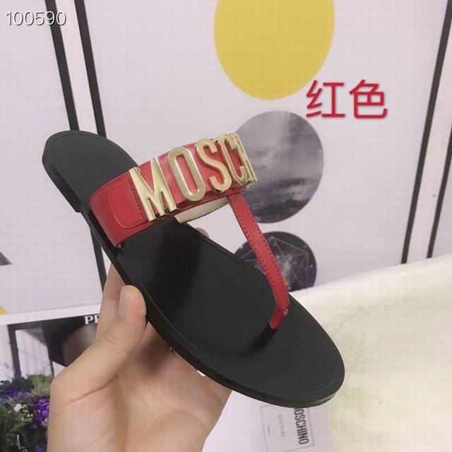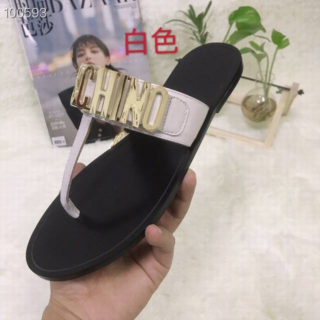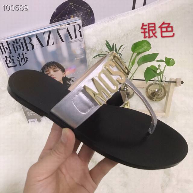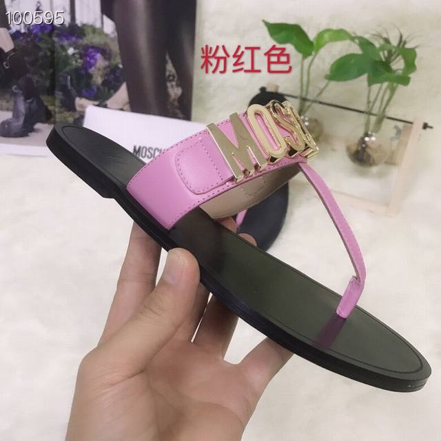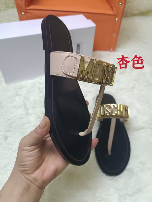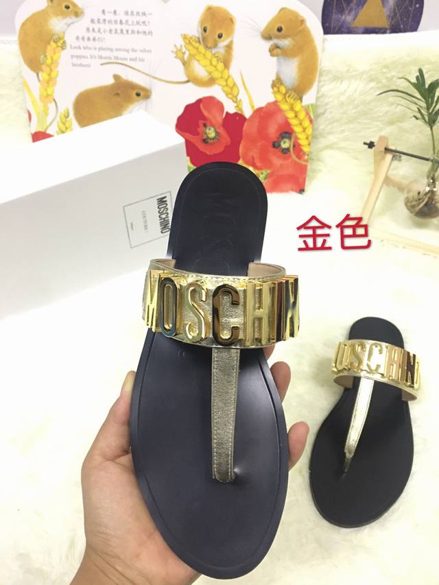 工厂p价 女装女鞋 运动原单莫斯奇诺 巨作平底夹脚凉鞋,黑色,红色,米白色,粉红色,金色,银色,玫瑰金,杏色,35-45码,中底大底橡胶 DDD