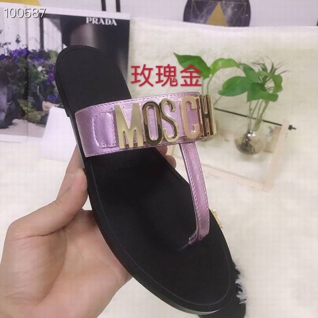 工厂p价 女装女鞋 运动原单莫斯奇诺 巨作平底夹脚凉鞋,黑色,红色,米白色,粉红色,金色,银色,玫瑰金,杏色,35-45码,中底大底橡胶