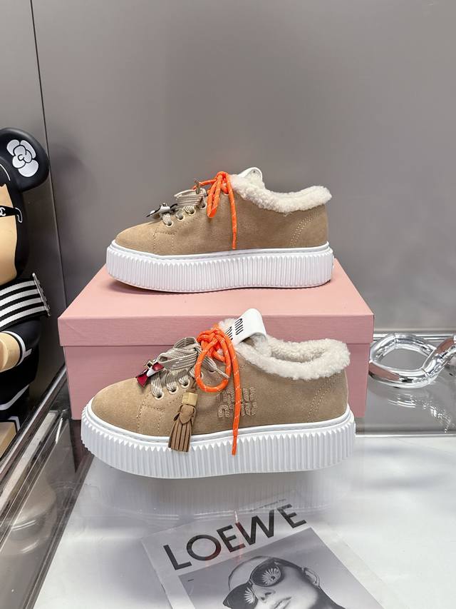 工厂p价 女装女鞋 运动原单 配饰花 Miumiu这波秋冬王炸:卡其 棕 杏三色调,真毛里裹脚暖,厚底踩出漫画腿,配饰吊花一缀,甜酷贵气全拿捏~冷天里的“脚边小火炉+造型利器”,上脚直接赢麻! DDD 码数5-40。 41定制 DDD