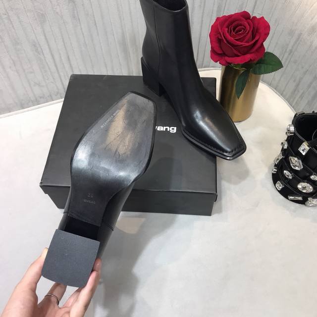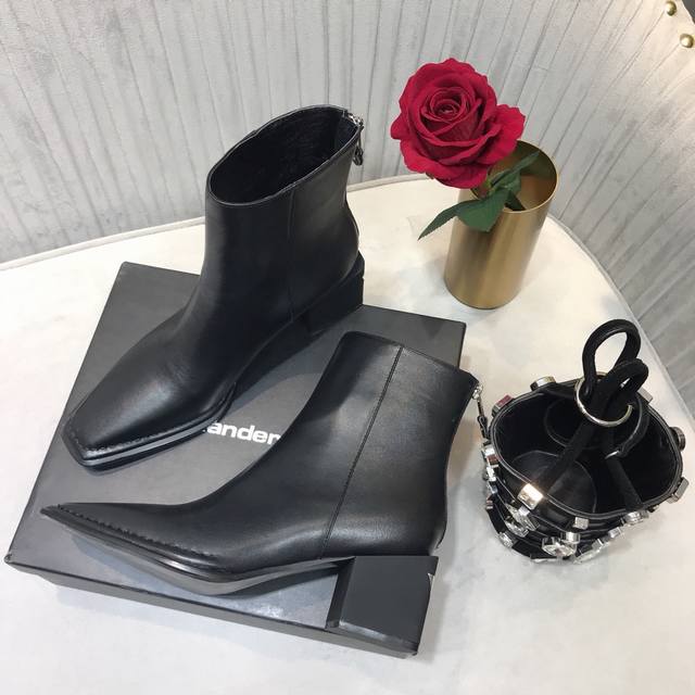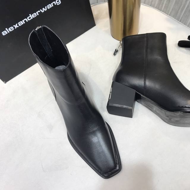 工厂P价 女装女鞋 运动原单 Alexander Wang 亚历山大王 纽约时装周秋冬季系列粗跟短靴。无敌街拍王,拯救整个秋冬小宇宙的利器!鞋面采用进口头层牛皮,内里和垫脚为羊皮。冬季的大衣毛衣 春秋的风衣线衫 夏日的短裙仔裤。统统都可以搭 而且非常提升时髦感。跟高:6.5Cm。Size: 35-39 40定做 Price