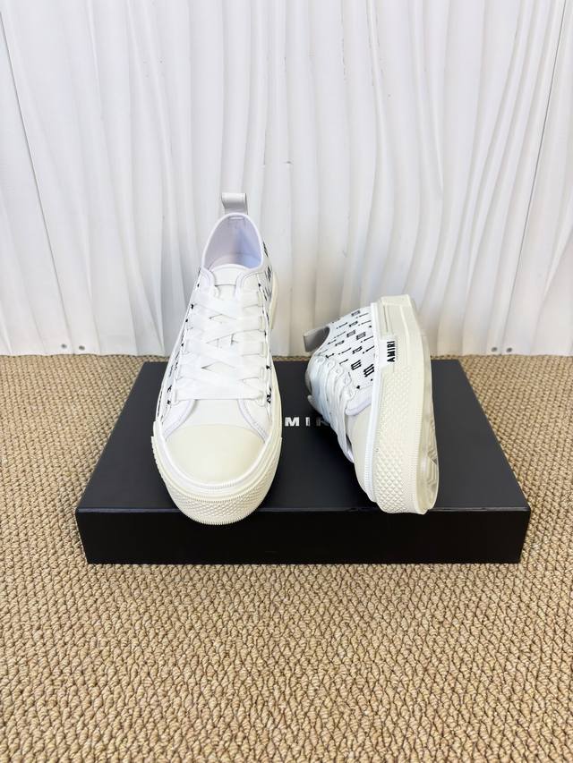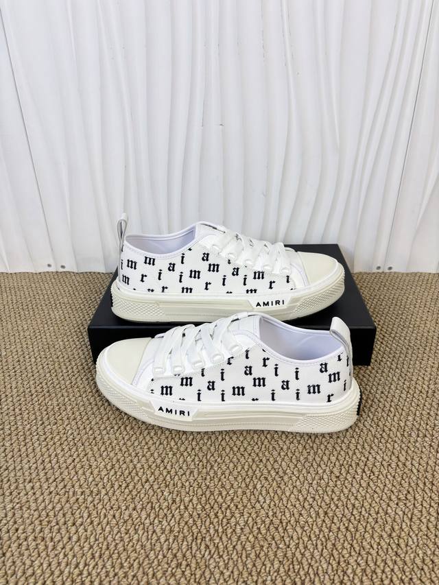 工厂P价 女装女鞋 运动原单 Amiri Stars 埃米尔系列帆布高帮板鞋 经典板鞋版型设计 款式时尚 1:小牛皮与帆布拼接鞋面 2:品牌字母3D打印徽章点缀 3:鞋舌带Logo徽章 后跟配真皮拉袢 方便穿着 4:配品牌标识双层撞色橡胶大底 5:牛皮内里垫脚 舒适度极高 6情侣款35-47