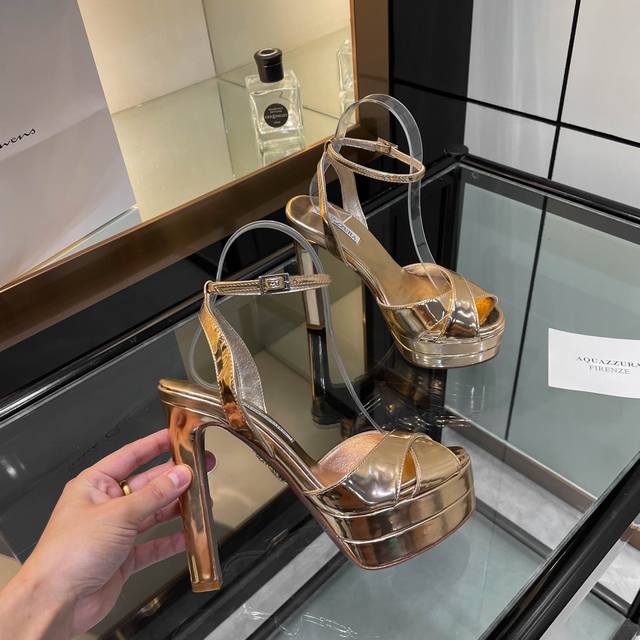 工厂P价 女装女鞋 运动原单 Aquazzura 2025新款凉鞋 顶级版本 独家款代购款顶级版本 质量超级美爆。 Zp 原版开模 原版扣开模 附带原版定制漆皮,超级炫美 一眼看上去就高端大气上档次! _________________________________* 全套包装.* 鞋面:原版定制漆皮* 衬里: 羊皮* 鞋底: 意大利真皮大底* 跟高: 13.5Cm* 水台: 4Cm* 码数: 35-41 34.40.41.42.订做不退换