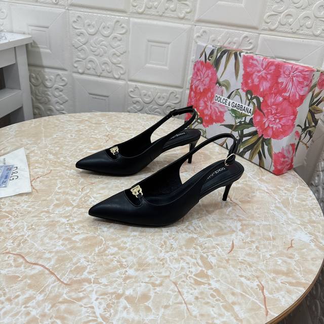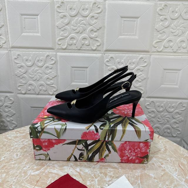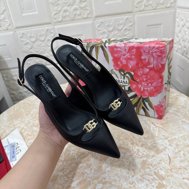 / 工厂p价 女装女鞋 运动原单 Dg.顶级版本.高品质 新款 专柜同步 1:1开模 Dg扣饰矮跟后空鞋 鞋面:牛皮 内里:羊皮 跟高: 6.5Cm 大底:A级原版