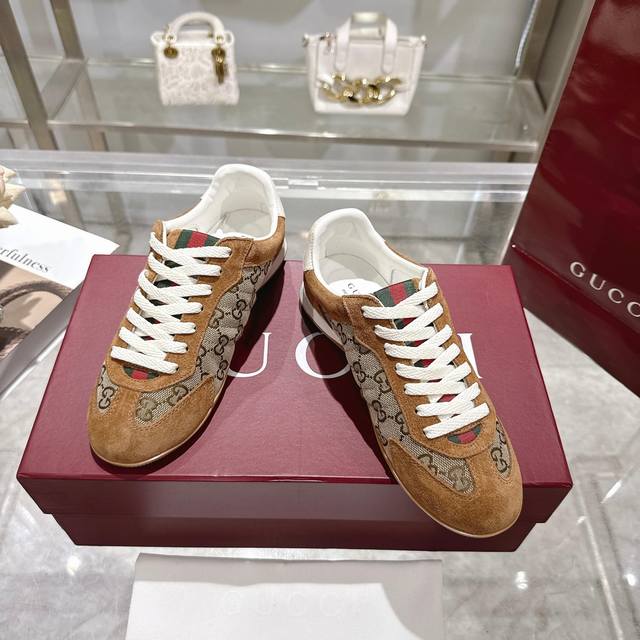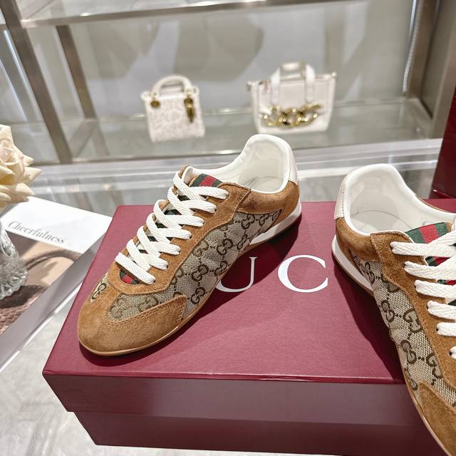 工厂P价 女装女鞋 运动原单 Gg德训鞋,爆款,轻盈设计焕新诠释运动风尚。行动间彰显精致质感。侧边缝线细节增添点睛之笔。黑色牛皮面料,黑色牛皮里,乳胶一体成型垫