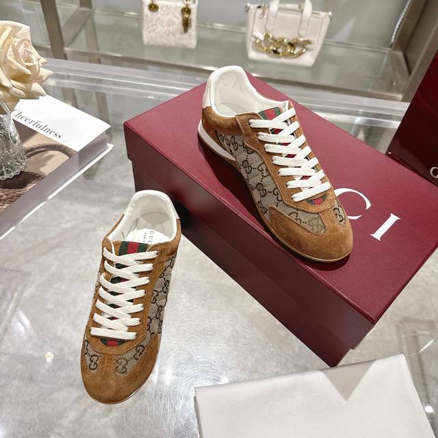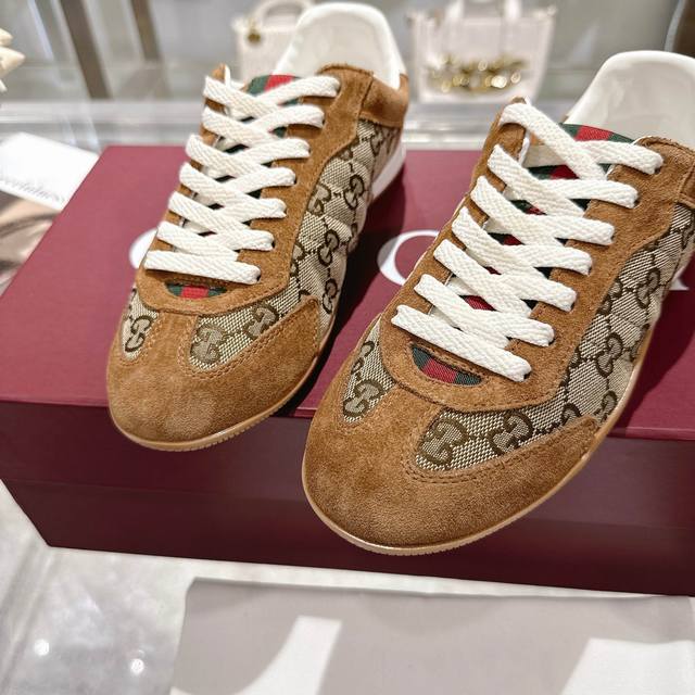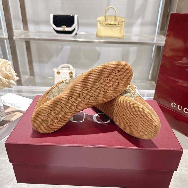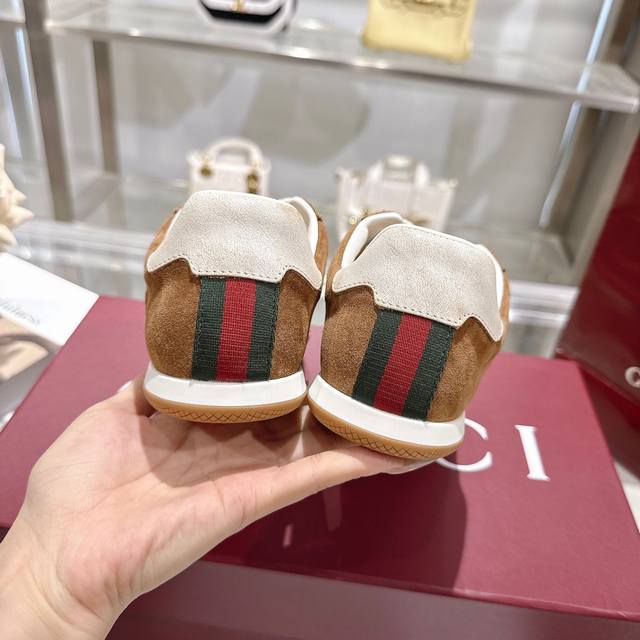 / 工厂P价 女装女鞋 运动原单 Gg德训鞋,爆款,轻盈设计焕新诠释运动风尚。行动间彰显精致质感。侧边缝线细节增添点睛之笔。黑色牛皮面料,黑色牛皮里,乳胶一体成型垫