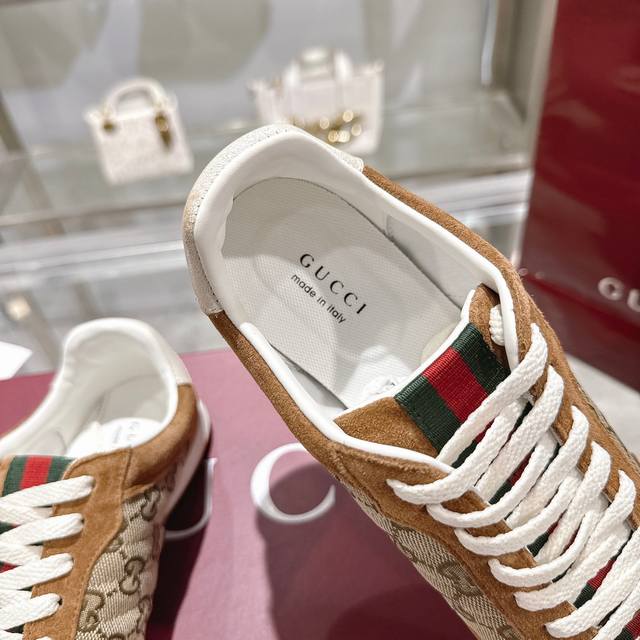 工厂P价 女装女鞋 运动原单 Gg德训鞋,爆款,轻盈设计焕新诠释运动风尚。行动间彰显精致质感。侧边缝线细节增添点睛之笔。黑色牛皮面料,黑色牛皮里,乳胶一体成型垫脚。鞋舌与后跟饰标志性红绿色织带。双色橡胶鞋底。男女同款,女码35-40码。男款:。39-45码。全套包装。