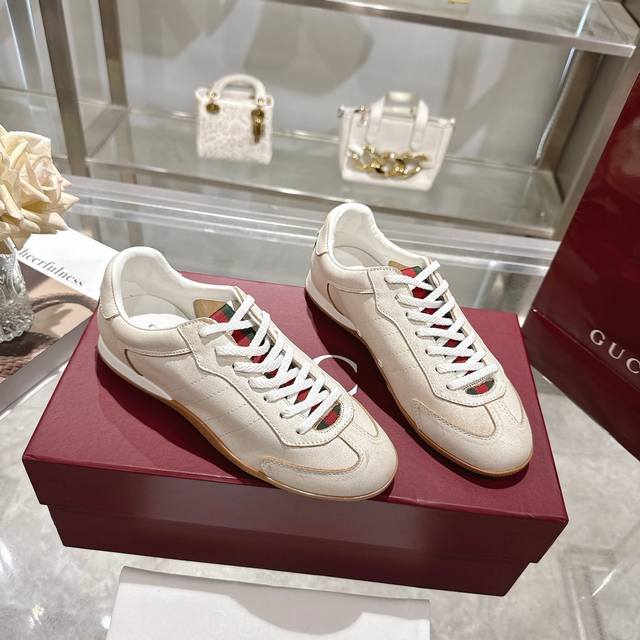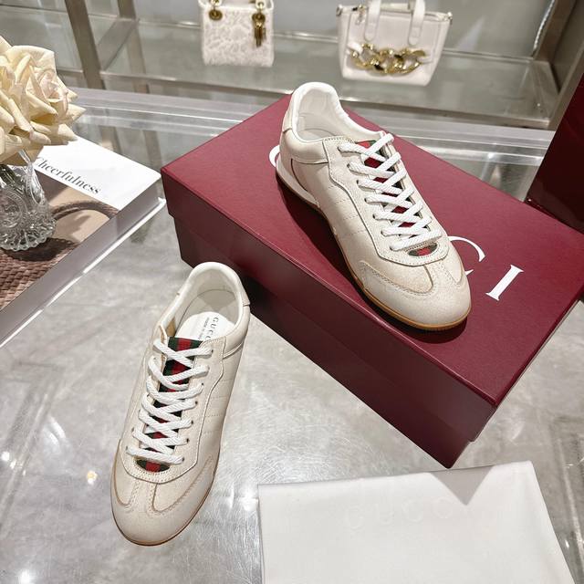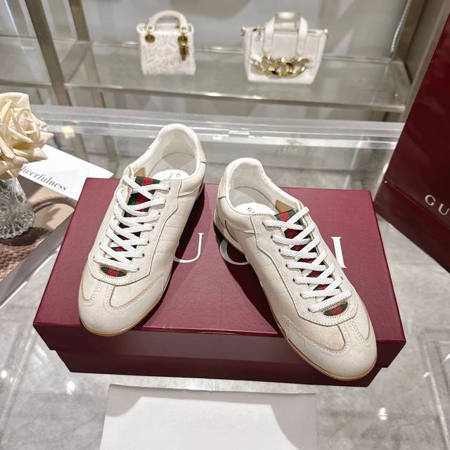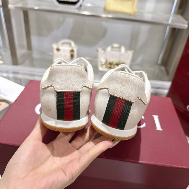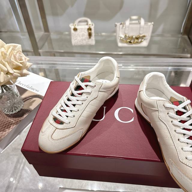 / 工厂P价 女装女鞋 运动原单 Gg德训鞋,爆款,轻盈设计焕新诠释运动风尚。行动间彰显精致质感。侧边缝线细节增添点睛之笔。黑色牛皮面料,黑色牛皮里,乳胶一体成型垫